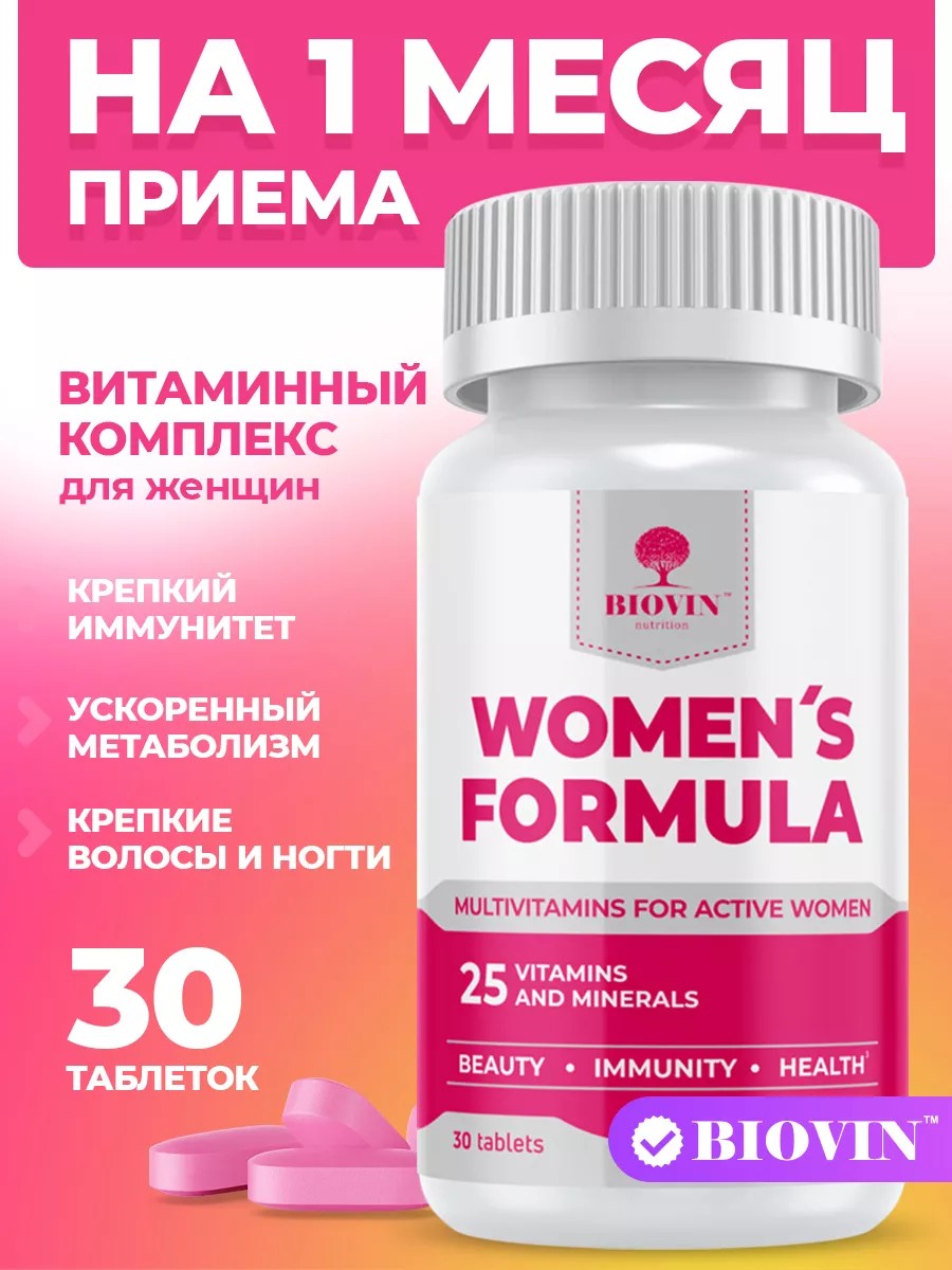 BIOVIN Женские витамины, бады для женщин, мультивитамины, 30 табл