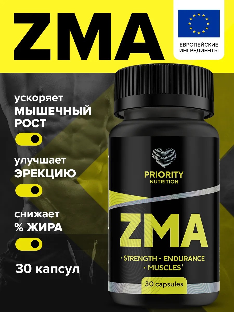 ZMA комплекс витамины 30 капсул- это сбалансированный комплекс цинка, магния, аспарагиновой кислоты и витамина В6. ПОЛЬЗА добавки ДЛЯ ОРГАНИЗМА МУЖЧИН И ЖЕНЩИН: Укрепляет иммунитет. Повышает умственную и физическую работоспособность. Защищает от стресса. Нормализует уровень сахара в крови. Улучшает качество сна. Защищает организм от ОРВИ. Выравнивает эмоциональный фон. Укрепляет кости и повышает прочность тканей. Улучшает метаболизм. Цинк способствует красоте кожи, активно препятствует проявлению акне и высыпаний. Повышает уровень либидо. ДЛЯ МУЖЧИН: эффективно стимулирует мужские гормоны, которые необходимы в организме для развития мышечной массы, средство мужской потенции, а так же сохранения водно-солевого баланса и быстрого восстановления после физических нагрузок. Ускоряет мышечный анаболизм. Влияет на сперматогенез, улучшает эрекцию. Ускоряет рост и восстановление мышечных тканей. Повышает энергетический обмен. Уменьшение жировой ткани. Повышает концентрацию и бодрость. Рекомендации: принимать по 1 капсуле 1 раз в день во время еды. Витамины имеют сертификат государственной регистрации. Информация о (про) товаре на картинках товара, всё, что полезно знать. Витаминные комплексы имеют накопительный эффект, ярко выраженный результат обычно достигается после окончания курса приема Бада. Организму порой тяжело без доп. витаминизации. В ежедневном рационе учитывать из каких продуктов мы получаем витамины, кроме этого все продукты в пищу важно сочетать перед приготовлением. По рекомендациям нутрициологов, Бады - хороший способ доп. иммунизации, через дополнение к рациону. После курса, при соблюдении дозировок, у людей наблюдается стабильный выраженный накопительный эффект, укрепляется иммунитет, улучшается самочувствие, нормализуется большинство процессов в организме, укрепляется нервная система и выравнивается эмоциональный фон.