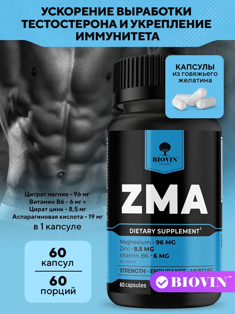 BIOVIN ЗМА (zma) 60 капсул, иммунитет, тестостерон, либидо