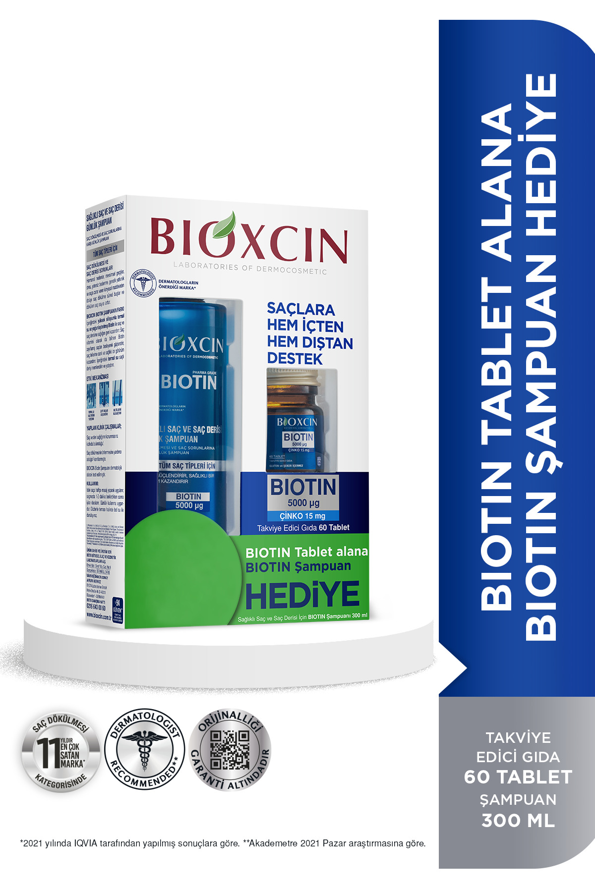 Bioxcin Biotin 5000 Mcg 60 Tablets Biotin Shampoo 300 ml Kofre