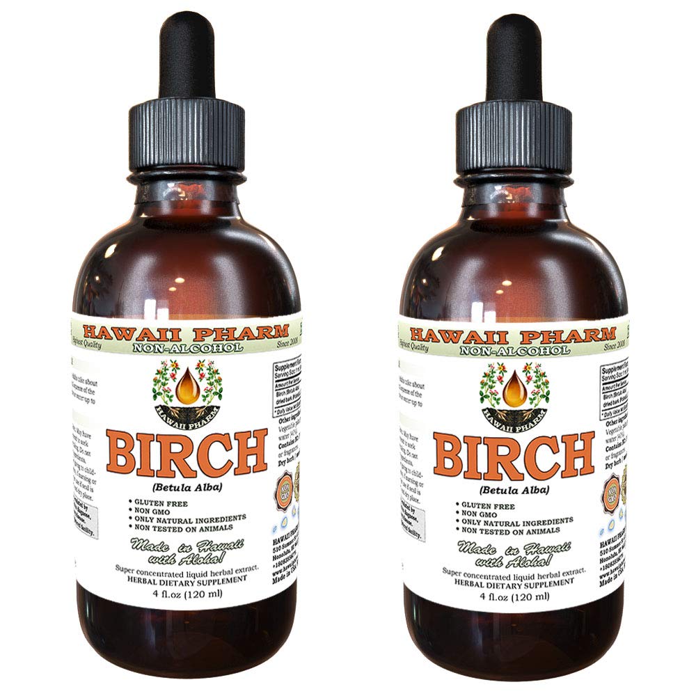 Birch Alcohol-Free Liquid Extract Birch (Betula Alba) Dried Bark Glycerite Hawaii Pharm Natural Herbal Supplement 2x4 oz 8 Fl Oz (Pack of 1)