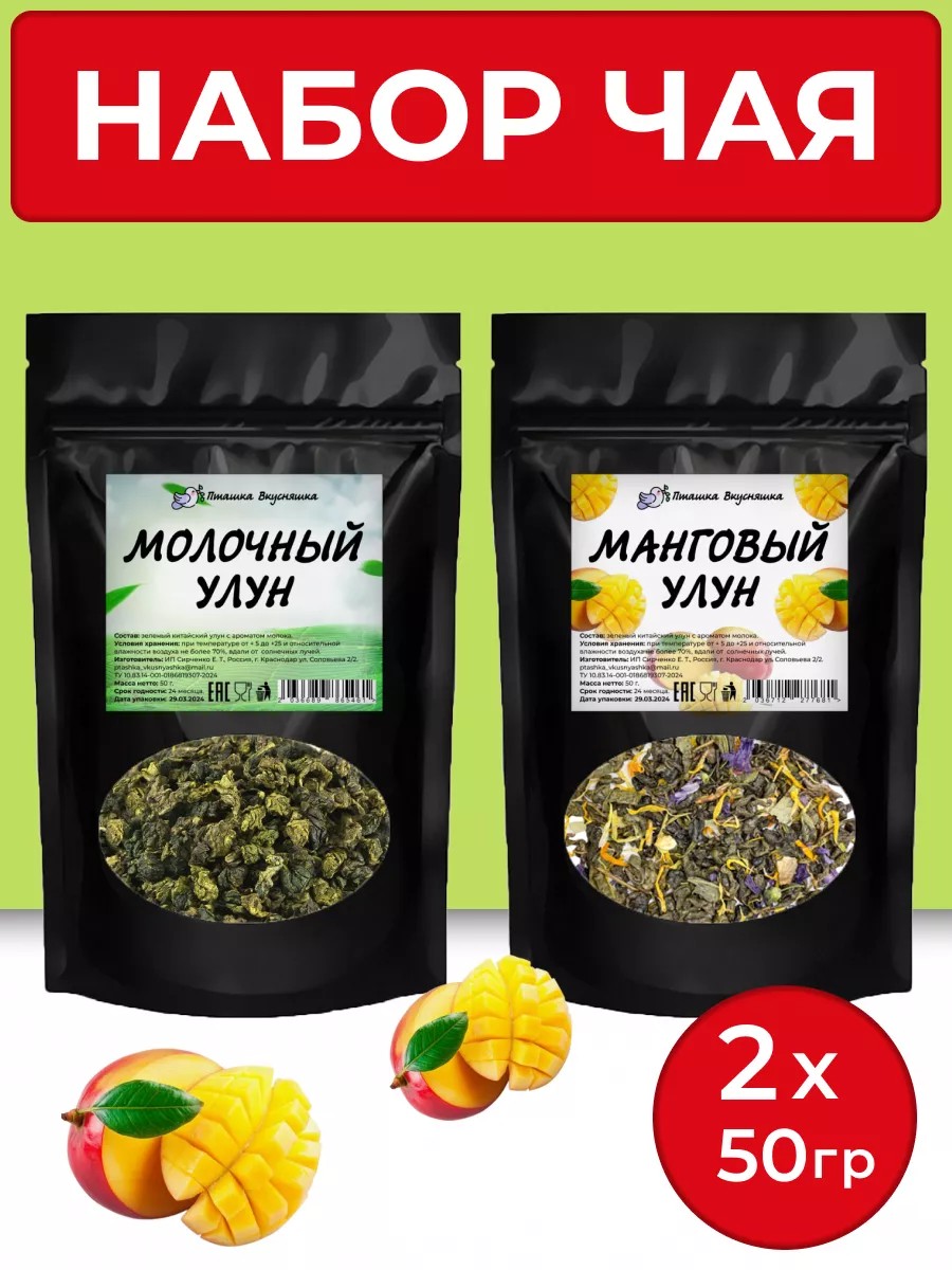 Пташка Вкусняшка Набор чая 2 пакета - молочный и манговый улун