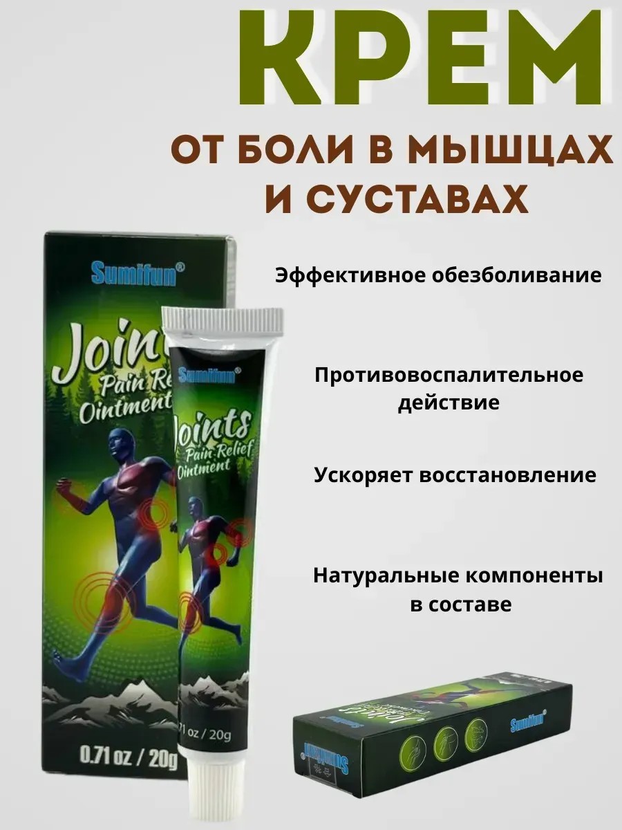 Sumifun Joints Pain Relief — эффективный крем для облегчения боли в суставах и мышцах. Подходит при артрите, артрозе, растяжениях и физических нагрузках. Быстро впитывается, улучшает подвижность и снимает воспаление. Компактный тюбик 20 г – удобно брать с собой!