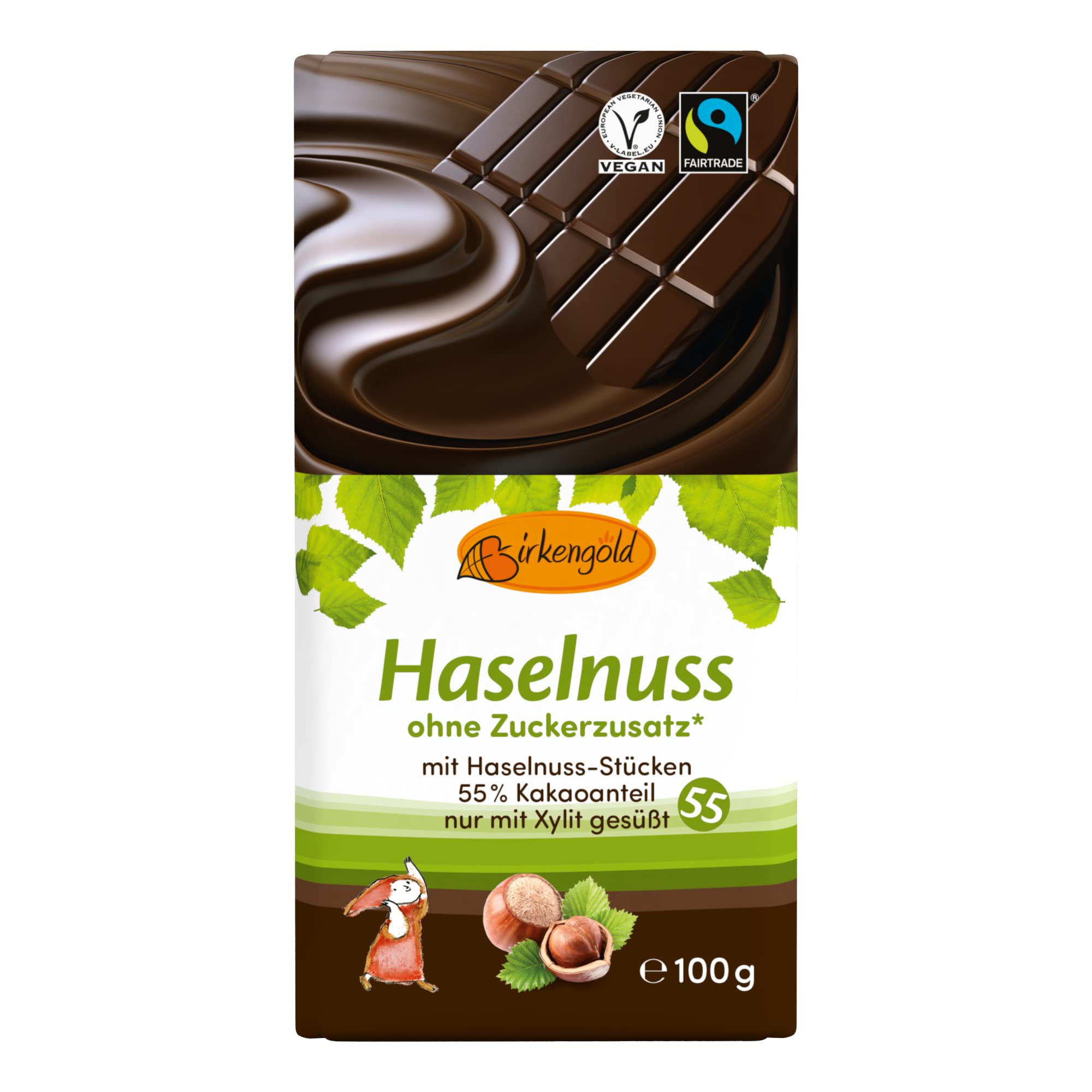 Birkengold Zartbitter Lot de 3 boîtes de chocolat avec noix 100 g