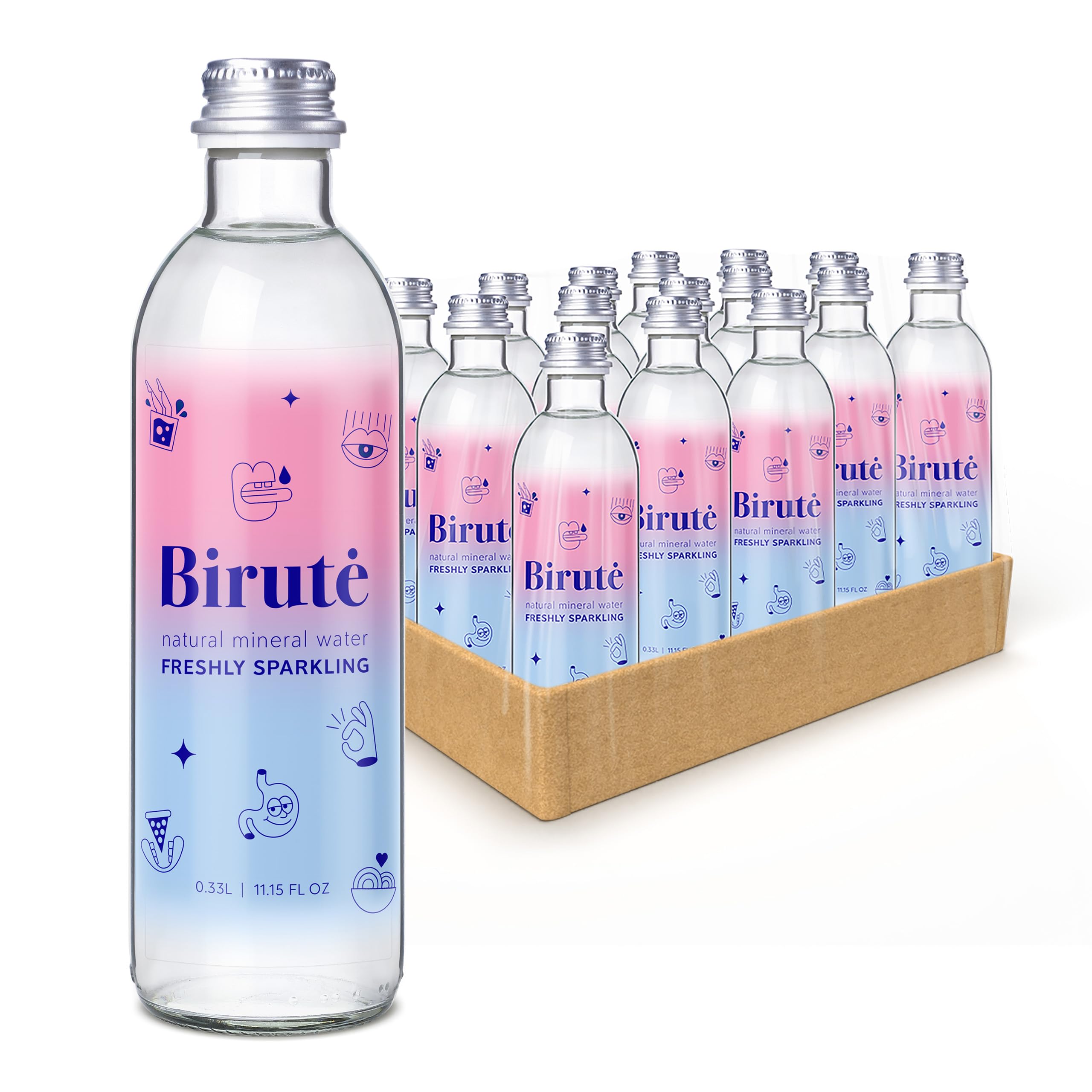 Birut BIRUTE Natural Carbonated Mineral Water 330ml - 15 Bottles for Maximum Hydration - Rich in Essential Minerals such as Calcium