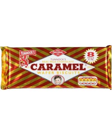Treat yourself to the classic and beloved taste of Tunnock's Caramel Wafers with this Biscuit Bundle. Ideal for biscuit enthusiasts and those who enjoy a caramel crunch, this bundle includes four packs of Tunnock's Caramel Wafers. Each pack contains eight individual wafers, with each wafer weighing 30g. These caramel wafers are a delightful treat, featuring layers of crispy wafer and chewy caramel, all coated in a smooth layer of chocolate. Whether you're enjoying a mid-day snack, looking for a sweet addition to your tea or coffee break, or sharing with friends and family, this bundle is perfect for all occasions. Ingredients: Caramel 50% (Glucose Syrup, Sugar, Sweetened Condensed Milk, Invert Sugar Syrup, Vegetable Oil, Flavour, Emulsifier - Soya Lecithin (E322)), Milk Chocolate 33% (Sugar, Cocoa Solid (min 25%), Milk Solids (min 14%), Vegetable Fat, Emulsifier - Soya Lecithin (E322), Flavouring), Wheat Flour, Sugar, Vegetable Oil, Raising Agent (Sodium Bicarbonate), Salt, Emulsifier - Soya Lecithin (E322) Allergy Information: Contains Gluten, Contains Wheat, Contains Milk, Contains Soya\Soybeans Contains: Cow's Milk, Wheat Gluten INGREDIENTS Caramel 50% (Glucose Syrup, Sugar, Sweetened Condensed Milk, Invert Sugar Syrup, Vegetable Oil, Flavour, Emulsifier - Soya Lecithin (E322)), Milk Chocolate 33% (Sugar, Cocoa Solid (min 25%), Milk Solids (min 14%), Vegetable Fat, Emulsifier - Soya Lecithin (E322), Flavouring), Wheat Flour, Sugar, Vegetable Oil, Raising Agent (Sodium Bicarbonate), Salt, Emulsifier - Soya Lecithin (E322) Allergy Information: Contains Gluten, Contains Wheat, Contains Milk, Contains Soya\Soybeans Contains: Cow's Milk, Wheat GlutenTrusted Brand Quality: Tunnock's is renowned for its high-quality biscuits and confectionery, ensuring that each caramel wafer in this bundle delivers a delightful and satisfying taste experience. Versatile Snacking Option: Enjoy these caramel wafers as a standalone treat, or pair them with your favorite hot beverage for a comforting snack experience. Perfect for Sharing: With four packs in this bundle, there's plenty of Tunnock's Caramel Wafers to go around, great for sharing with colleagues, friends, or family. Convenient Pack Size: Each pack contains eight wafers, making them ideal for snacking, packing in lunchboxes, or enjoying on the go. Tunnock's Caramel Wafer: Savor the unique combination of crispy wafer and chewy caramel, coated in a thin layer of chocolate, offering a satisfying texture and delicious taste.