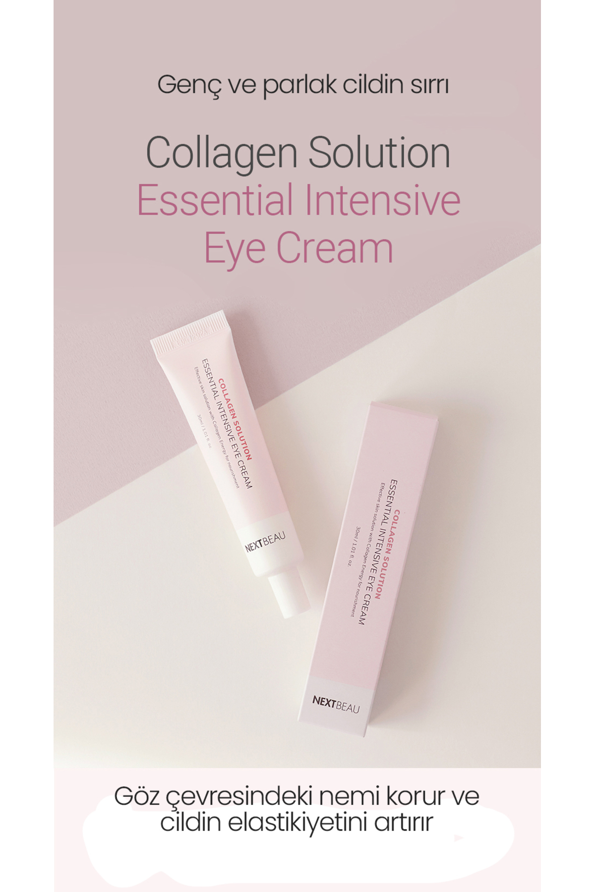 With its reinforced formula and "marine collagen" constituting 75 of its content, Nextbeau eye cream fights against wrinkles and loss of skin elasticity. The cream, which is suitable for all skin types with its gel-type structure, moisturizes the skin, helps tighten and smooth the skin. It creates a moisture barrier to protect the skin from external factors. "Collagen", which has a similar molecular structure to human skin cells, is an ingredient that restores elasticity to the skin by eliminating the natural collagen deficiency in sagging skin. While collagen extract is used to tighten sagging skin, adenosine is effective in reducing the formation of fine lines. The effective anti-aging cream, which draws strength from many natural ingredients other than collagen against wrinkles and fine lines, supports the skin to become firmer. It effectively moisturizes the skin thanks to the synergy created by collagen and hyaluronic acid. It does not contain artificial coloring, fragrance or paraben. 30ml How to Use: At the last stage of your skincare routine, apply evenly to the entire face. It is recommended to use twice a day, in the morning and evening routine.