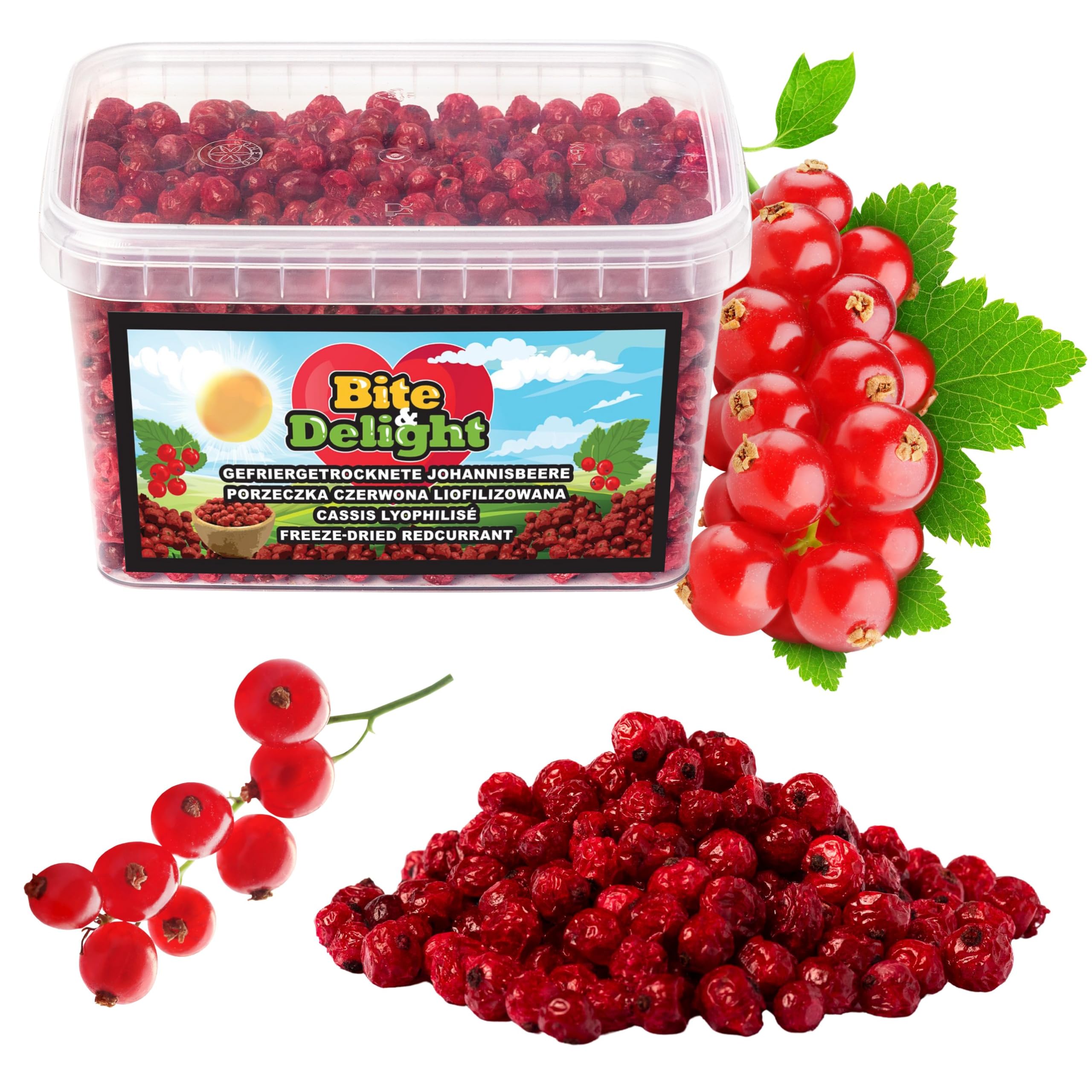 Our freeze-dried red currants are the perfect choice for those who enjoy healthy and natural snacks. Thanks to the freeze-drying process, these berries retain all their valuable nutrients, vitamins, and minerals while remaining light and crunchy. With no added sugar, preservatives, or artificial colors, they offer a 100 natural experience. Nutritional values per 100g of product: Energy: 1328 kJ 316 kcal Fat: 1.2 g Saturated fatty acids: Our freeze-dried red currants are ideal as a healthy snack or to enrich many dishes. Add them to your yogurt, muesli, desserts, smoothies, or baked goods, and enjoy their intense color, unique taste, and natural aroma. With a long shelf life, they remain fresh and nutritious, for healthy enjoyment at any time. INGREDIENTS Red currantsLong shelf life – Freeze-drying keeps currants fresh and nutritious for a long time. Versatile – Perfect for yogurt, muesli, desserts, baked goods, smoothies, or simply enjoyed on their own. Crunchy and delicious – Ideal as a healthy, low-calorie snack. Rich in vitamins and minerals – Freeze-drying preserves essential nutrients. 100 natural – No added sugar, preservatives, or artificial colors. Nos groseilles rouges lyophilisées sont le choix parfait pour ceux qui apprécient des collations saines et naturelles. Grâce au procédé de lyophilisation, ces baies conservent tous leurs précieux nutriments, vitamines et minéraux tout en restant légères et croquantes. Sans ajout de sucre, conservateurs ou colorants artificiels, elles offrent une expérience 100 naturelle. Valeurs nutritionnelles pour 100g de produit : Énergie : 1328 kJ 316 kcal Matières grasses : 1,2 g Acides gras saturés : Nos groseilles lyophilisées sont idéales comme collation saine ou pour enrichir de nombreux plats. Ajoutez-les à vos yaourts, mueslis, desserts, smoothies ou pâtisseries, et profitez de leur couleur intense, de leur goût unique et de leur arôme naturel. Avec une longue durée de conservation, elles restent fraîches et nutritives, pour un plaisir sain à tout moment. INGRÉDIENTS Groseilles rougesLongue durée de conservation – Grâce à la lyophilisation, les groseilles restent fraîches et nutritives pendant longtemps. Polyvalent – Parfait pour les yaourts, mueslis, desserts, pâtisseries, smoothies ou à déguster seul. Croquantes et délicieuses – Idéal comme collation saine et faible en calories. Riche en vitamines et minéraux – La lyophilisation préserve les nutriments essentiels. 100 naturel – Sans sucre ajouté, conservateurs ou colorants artificiels.