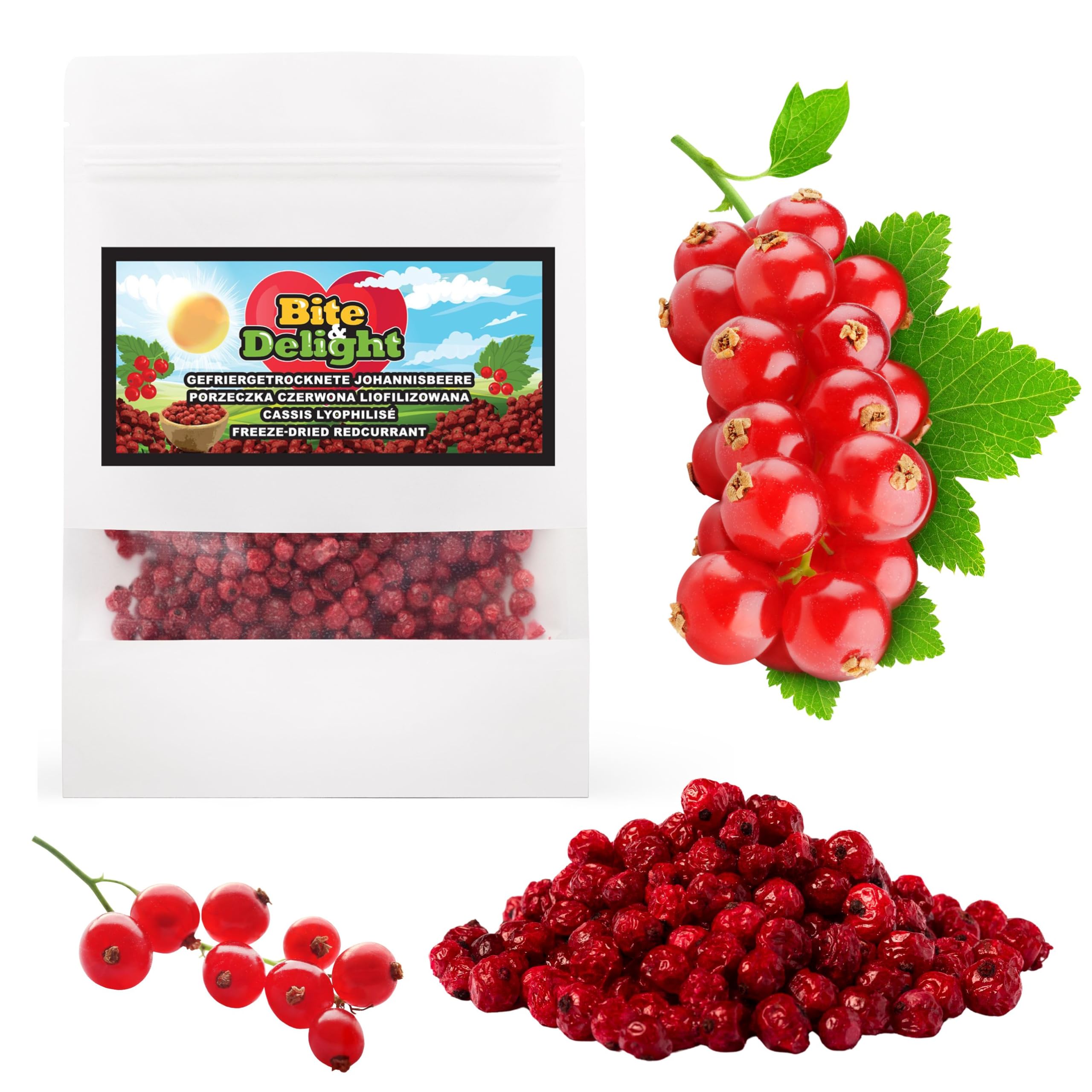 Our freeze-dried red currants are the perfect choice for those who enjoy healthy and natural snacks. Thanks to the freeze-drying process, these berries retain all their valuable nutrients, vitamins, and minerals while remaining light and crunchy. With no added sugar, preservatives, or artificial colors, they offer a 100 natural experience. Nutritional values per 100g of product: Energy: 1328 kJ 316 kcal Fat: 1.2 g Saturated fatty acids: Our freeze-dried red currants are ideal as a healthy snack or to enrich many dishes. Add them to your yogurt, muesli, desserts, smoothies, or baked goods, and enjoy their intense color, unique taste, and natural aroma. With a long shelf life, they remain fresh and nutritious, for healthy enjoyment at any time. INGREDIENTS Red currantsLong shelf life – Freeze-drying keeps currants fresh and nutritious for a long time. Versatile – Perfect for yogurt, muesli, desserts, baked goods, smoothies, or simply enjoyed on their own. Crunchy and delicious – Ideal as a healthy, low-calorie snack. Rich in vitamins and minerals – Freeze-drying preserves essential nutrients. 100 natural – No added sugar, preservatives, or artificial colors. Nos groseilles rouges lyophilisées sont le choix parfait pour ceux qui apprécient des collations saines et naturelles. Grâce au procédé de lyophilisation, ces baies conservent tous leurs précieux nutriments, vitamines et minéraux tout en restant légères et croquantes. Sans ajout de sucre, conservateurs ou colorants artificiels, elles offrent une expérience 100 naturelle. Valeurs nutritionnelles pour 100g de produit : Énergie : 1328 kJ 316 kcal Matières grasses : 1,2 g Acides gras saturés : Nos groseilles lyophilisées sont idéales comme collation saine ou pour enrichir de nombreux plats. Ajoutez-les à vos yaourts, mueslis, desserts, smoothies ou pâtisseries, et profitez de leur couleur intense, de leur goût unique et de leur arôme naturel. Avec une longue durée de conservation, elles restent fraîches et nutritives, pour un plaisir sain à tout moment. INGRÉDIENTS Groseilles rougesLongue durée de conservation – Grâce à la lyophilisation, les groseilles restent fraîches et nutritives pendant longtemps. Polyvalent – Parfait pour les yaourts, mueslis, desserts, pâtisseries, smoothies ou à déguster seul. Croquantes et délicieuses – Idéal comme collation saine et faible en calories. Riche en vitamines et minéraux – La lyophilisation préserve les nutriments essentiels. 100 naturel – Sans sucre ajouté, conservateurs ou colorants artificiels.