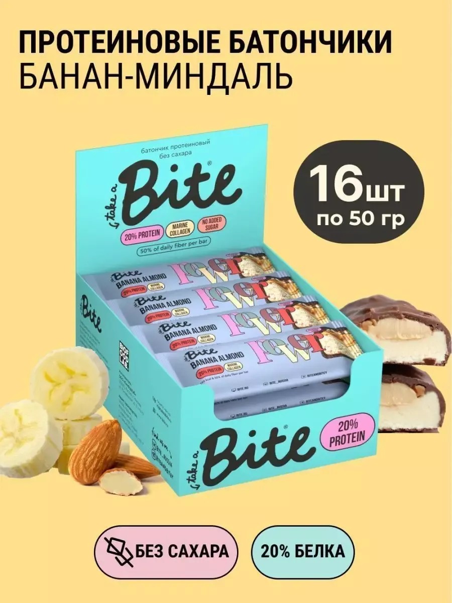 Bite Батончики протеиновые без сахара Банан-Миндаль 16 шт