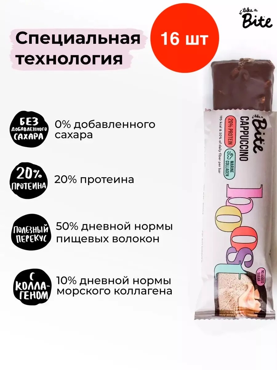 Bite Батончики протеиновые без сахара Капучино 16 шт