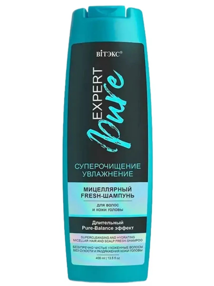 Biтэкс, мицеллярный fresh-шампунь для волос и кожи головы, Expert Pure, Суперочищение и увлажнение, 400 мл. Fresh-шампунь создан по специально разработанной экспертной формуле, чтобы подарить волосам профессиональное очищение и глубокое увлажнение, как после салона красоты.