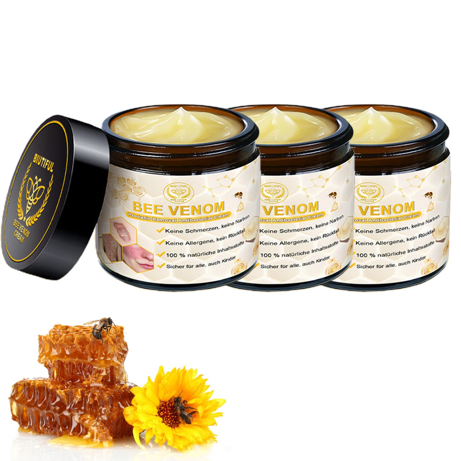BIUTIFUL Bee Venom Skin Cream 2024 New Bee Venom Psoriasis Cream Beautiful Professional Bee Venom Correcting Cream for All Skin Types 1.69oz (3 Bottle)