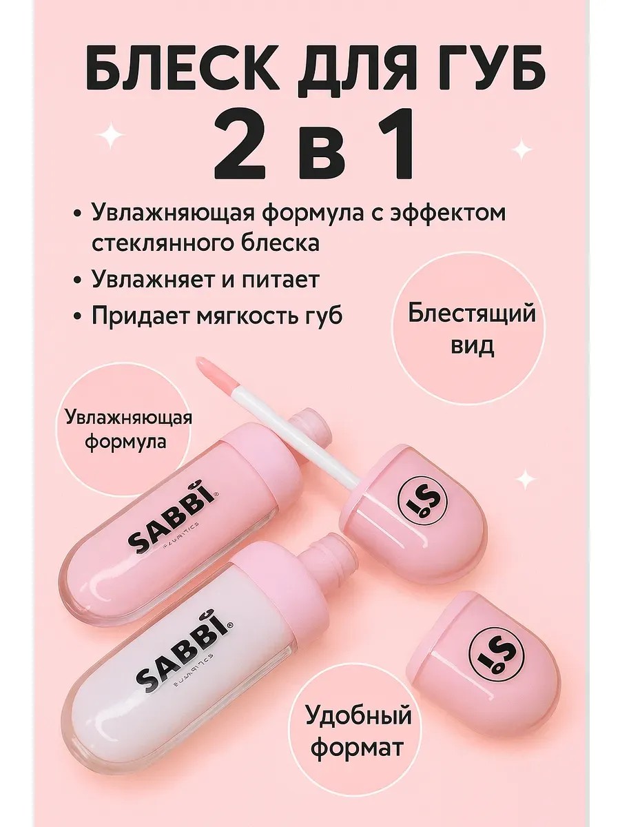 Блеск для губ 2 в 1 SABBÍ – это идеальное сочетание ухода и макияжа. Нежная текстура увлажняет, питает и придает губам естественный объем. Благодаря удобному формату блеск легко наносится и не растекается.