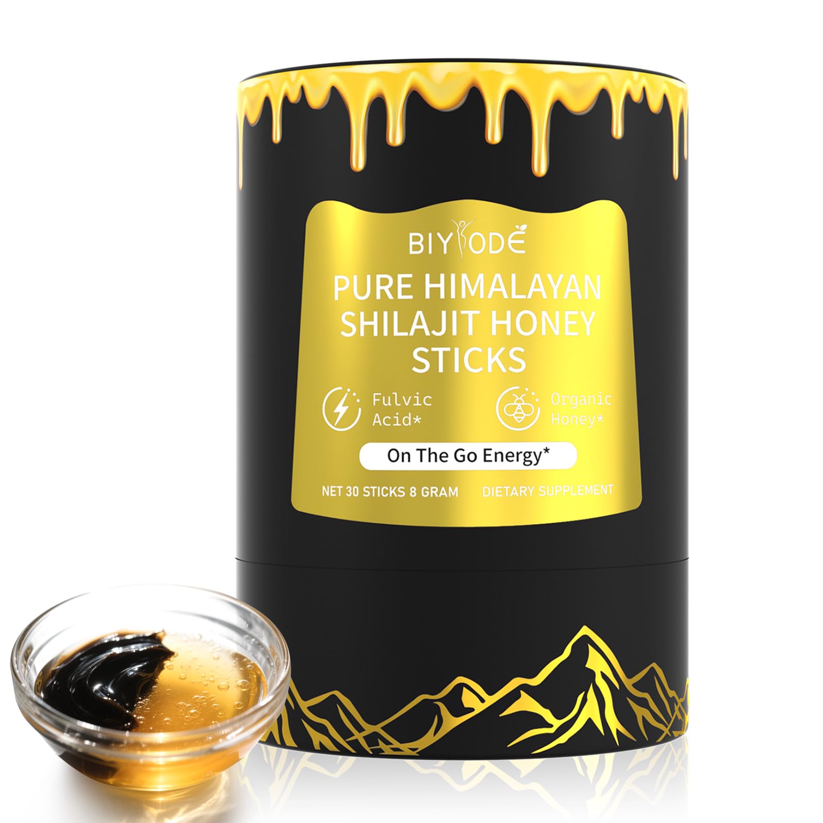 Ancient Wisdom Modern Science: BIYODE combines the best of both worlds with our Shilajit Honey Sticks, offering a holistic approach to wellness for those seeking increased energy or improved immunity, straight from the heart of the Himalayas. Cognitive Health Balance: Our Shilajit Honey Sticks are packed with essential vitamins including B6, Thiamin, Niacin and Riboflavin to support mental wellbeing and cognitive balance. Immune System Support: Rich in antioxidants, the raw honey in our sticks strengthens the immune system, providing additional health benefits. Energy Boost Vitality: Known for its high fulvic acid content, shilajit improves cellular metabolism, resulting in increased energy levels and vitality, ideal for maintaining an active lifestyle. 100 Natural Origin: Experience the purity of our shilajit, sourced directly from the Himalayas, and honey, sourced directly from bee hives, ensuring a completely natural product with no additives or preservatives.