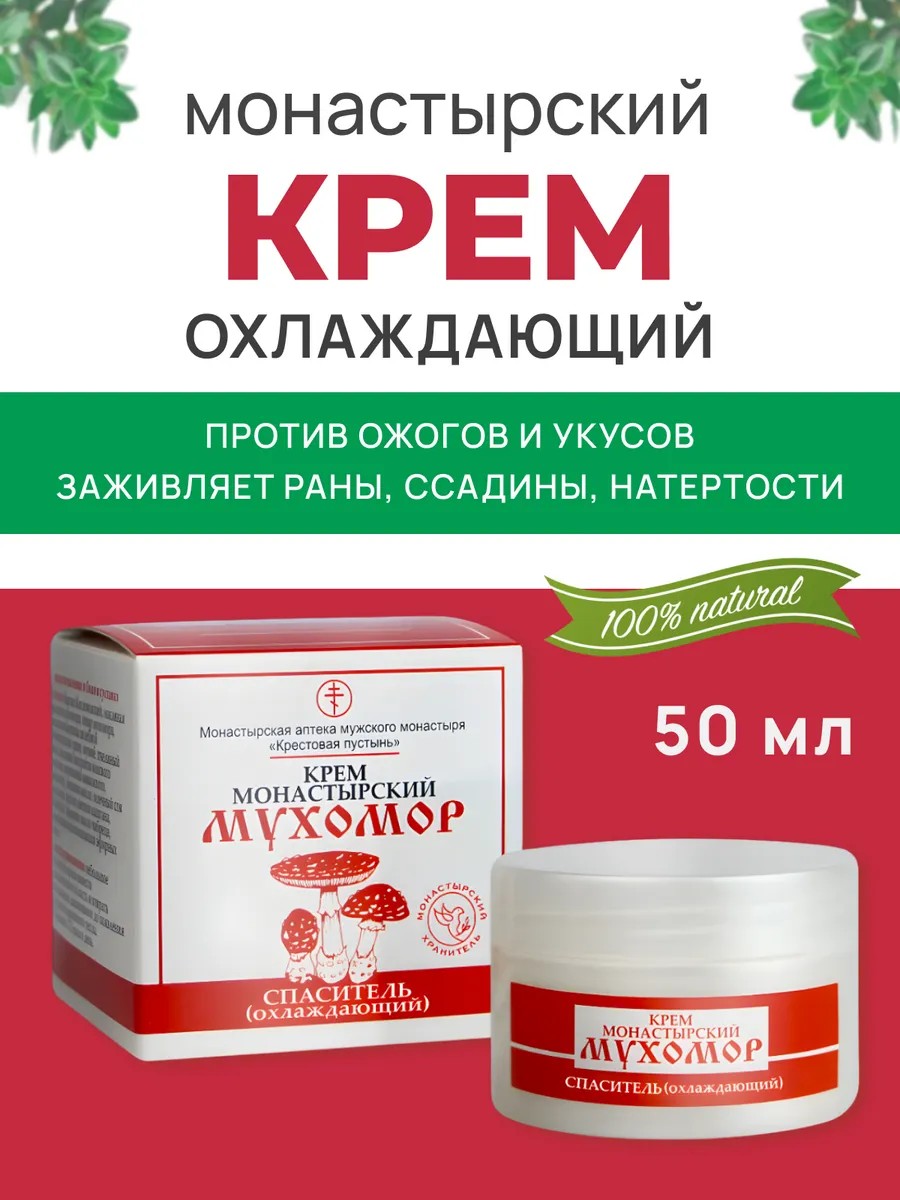 Продукт монастырский охлаждающий на основе масляной вытяжки гриба мух-ра, активно применяют в нетрадиционной медицине. Работает для заживления ран, ссадин, мелких травм, раздражения кожи, в том числе после укусов насекомых.
