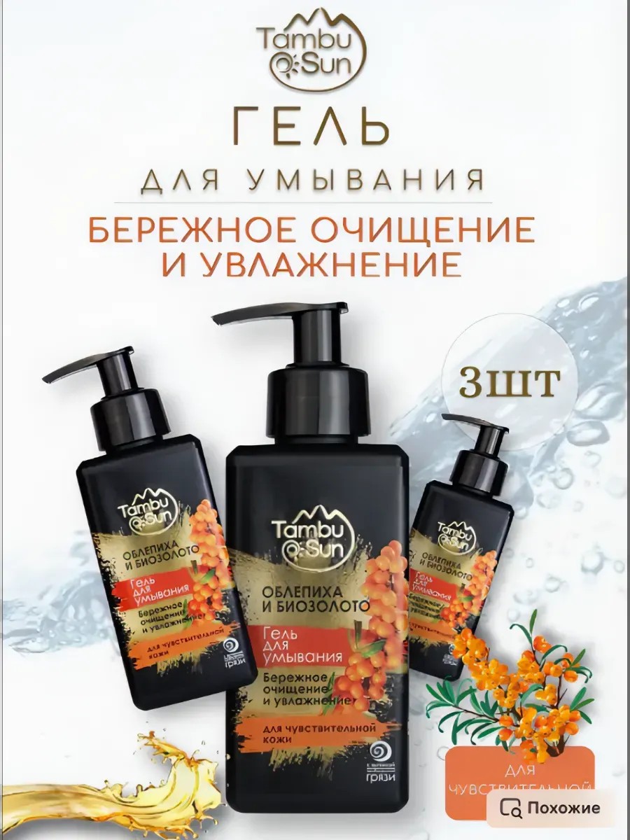 Bizoryuk Gel for washing the face of sea buckthorn and biozoloto 3 pcs