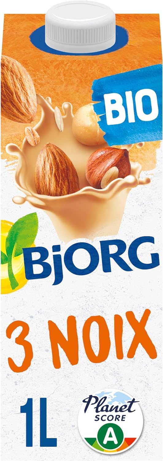 The first brand to offer organic products sold in supermarkets, Bjorg was born in France in 1988 with a simple ambition: to provide everyone with access to organic, healthy and balanced food that combines taste, quality and deliciousness. Created by a nutritionist, Bjorg is a French brand which, in addition to being a pioneer of organic products for the general public, is constantly seeking to improve by expanding its range of plant-based drinks, organic cereals, energy bars, organic biscuits, vegan desserts and other references that have made it famous for over 30 years. 100 organic, but also ethical, the entire Bjorg range is guaranteed without palm oil. Certified B-Corp in 2017, the brand also created the Bjorg, Bonneterre and Citoyens foundation encouraging a healthy, sustainable eating model that is better connected to nature. At Bjorg, each ingredient is carefully chosen for its nutritional qualities, giving pride of place to fiber, wholemeal flour and natural sugars and limiting the use of white flour, refined sugars and salt as much as possible. Thanks to its carefully thought-out recipes, Bjorg also reduces the saturated fatty acid content of its products, to help you consume less on a daily basis. 70 of Bjorg references display a Nutri-Score of A or B, almost all of them are suitable for vegetarians. In 1992, Bjorg was the first brand to offer consumers its famous organic soy drink. Since then, its range of drinks has extended to other ingredients (almond, oats, rice, coconut, etc.) and recipes with gourmet flavors, to vary the pleasures. INGREDIENTS WATER, CEREALS 11.4 (SPELLED, rice, OATS), HAZELNUTS 2 , ALMONDS 1 , MACADAMIA NUTS 0.5 , natural ALMOND flavor, sea salt, stabilizers: guar gum, xanthan gum. DIRECTIONS FOR USE Can be eaten hot or cold and used as an ingredient in sweet recipes. SAFETY WARNING Contains nuts. ORGANIC AND PLANT-BASED SINCE ALWAYS: A pioneer in organic products for the general public since 1988, Bjorg offers plant-based and gourmet alternatives to traditional foods to delight you while increg the proportion of plants in your meals. HOW TO ENJOY THIS ORGANIC DRINK?: This Bjorg drink can be enjoyed as a classic drink, as a complement to your muesli or cereals or as a basic ingredient in a vegan dessert recipe. ECO-RESPONSIBLE PACKAGING: The packaging of this drink is made from green electricity and 88 plant-based material. Its cap is made from sugar cane, a 100 renewable material. THE ADVANTAGES OF THIS PLANT-BASED DRINK: This drink, in which no sugar has been added, is made from hazelnuts from the Mediterranean b (Turkey, Spain, Italy), almonds from Italy and macadamia nuts from Kenya. This drink is naturally rich in protein. 3-NUT PLANT-BASED DRINK: Discover our new gourmet drink: the 3-Nut drink. A delicious blend combining the intensity of hazelnuts, almonds, and macadamia nuts with the sweetness of cereal. And all this with no added sugar. So you can treat yourself without feeling guilty! Première marque à proposer des produits bio vendus en grande surface, Bjorg est née en France, en 1988, avec une ambition simple : permettre à tous d'accéder à une alimentation biologique, saine et équilibrée qui allie goût, qualité et gourmandise. Créée par une nutritionniste, Bjorg est une marque française qui, en plus d'être une pionnière du bio grand public, cherche sans cesse à s'améliorer en élargissant sa gamme de boissons végétales, céréales bio, barres énergétiques, biscuits bio, desserts vegan et autres références qui font sa célébrité depuis plus de 30 ans. 100 biologique, mais aussi éthique, toute la gamme Bjorg est garantie sans huile de palme. Certifiée B-Corp en 2017, la marque a également créé la fondation Bjorg, Bonneterre et Citoyens encourageant un modèle d'alimentation sain, durable et mieux connecté à la nature. Chez Bjorg, chaque ingrédient est choisi avec soin pour ses qualités nutritionnelles en faisant la part belle aux fibres, farines complètes et sucres naturels et en limitant au maximum l'utilisation de farine blanche, de sucres raffinés et de sel. Grâce à ses recettes minutieusement pensées, Bjorg réduit aussi la teneur en acides gras saturés de ses produits, pour vous aider à en consommer moins au quotidien. 70 des références Bjorg affichent un Nutri-Score de A ou B, quasiment toutes conviennent aux végétariens. En 1992, Bjorg est la première marque à proposer aux consommateurs sa célèbre boisson bio au soja. Depuis, sa gamme de boissons s'est étendue à d'autres ingrédients (amande, avoine, riz, coco, etc.) et recettes aux saveurs gourmandes, pour varier les plaisirs. INGRÉDIENTS EAU, CÉRÉALES 11,4 (ÉPEAUTRE, riz, AVOINE), NOISETTES 2 , AMANDES 1 , NOIX DE MACADAMIA 0,5 , arôme naturel d'AMANDE, sel marin, stabilisants: gomme guar, gomme xanthane. MODE D'EMPLOI Peut être consommée chaude ou froide et utilisée comme ingrédient dans des recettes sucrées. AVERTISSEMENT DE SÛRETÉ Contient des fruits à coque. BIO ET VÉGÉTALE DEPUIS TOUJOURS : Pionnière du bio grand public depuis 1988, Bjorg propose des alternatives végétales et gourmandes aux aliments traditionnels pour vous régaler tout en augmentant la part de végétal dans vos repas. COMMENT SAVOURER CETTE BOISSON BIO ? : Cette boisson Bjorg peut se déguster comme une boisson classique, en complément de votre muesli ou de vos céréales ou encore comme ingrédient de base d'une recette de dessert vegan. EMBALLAGE ÉCORESPONSABLE : L'emballage de cette boisson est conçu à partir d'électricité verte et de 88 de matière végétale. Son bouchon est fabriqué à partir de canne à sucre, une matière 100 renouvelable. LES ATOUTS DE CETTE BOISSON VEGETALE : Cette boisson dans laquelle aucun sucre n'a été ajouté est conçue à base de noisettes en provenance du bassin méditerranéen (Turquie, Espagne, Italie), d'amande d'origine italienne et de noix de macadamia provenant du Kenya .Cette boisson est natur