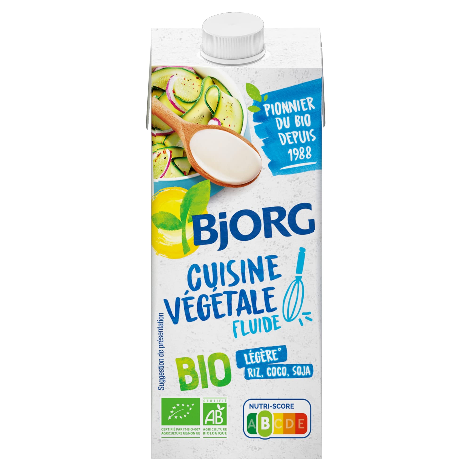 INGREDIENTS: Water, vegetables 9.1 (rice , hulled SOYbeans , coconut ), cold-pressed sunflower oil , stabilizer: guar gum emulsifier: SOY lecithin sea salt. INGREDIENTS INGREDIENTS: Water, vegetables 9.1 (rice , hulled SOYbeans , coconut ), cold-pressed sunflower oil , stabilizer: guar gum emulsifier: SOY lecithin sea salt. SAFETY WARNING Contains soy. May contain traces of other allergens. ORGANIC AND PLANT-BASED SINCE ALWAYS: A pioneer in organic food for the general public since 1988, Bjorg offers plant-based and gourmet alternatives to traditional foods, to delight you while increg the proportion of plants in your meals. HOW TO USE FLUID PLANT-BASED CUISINE? Perfect for savory and sweet recipes, it can be used in quiches, desserts, and much more. ECO-FRIENDLY PACKAGING: Made with sustainable materials, this preparation is designed to minimize its environmental impact. THE ADVANTAGES OF THIS PLANT-BASED CUISINE: Its fluid texture adapts to a variety of dishes, from sauces to gratins, for a gourmet and balanced cuisine. FLUID PLANT-BASED CUISINE: 100 plant-based and gluten-free, this culinary preparation is ideal for replacing traditional creams in your recipes. INGREDIENTS: Eau, végétaux 9,1 (riz , fèves de SOJA décortiquées, noix de coco ), huile de tournesol pressée à froid, stabilisant : gomme guar émulsifiant : lécithine de SOJA sel marin. INGRÉDIENTS INGREDIENTS: Eau, végétaux 9,1 (riz , fèves de SOJA décortiquées, noix de coco ), huile de tournesol pressée à froid, stabilisant : gomme guar émulsifiant : lécithine de SOJA sel marin. AVERTISSEMENT DE SÛRETÉ Contient du soja. Peut contenir des traces d'autres allergènes. BIO ET VÉGÉTALE DEPUIS TOUJOURS : Pionnière du bio grand public depuis 1988, Bjorg propose des alternatives végétales et gourmandes aux aliments traditionnels, pour vous régaler tout en augmentant la part de végétal dans vos repas. COMMENT UTILISER LA CUISINE VÉGÉTALE FLUIDE ? Parfaite pour les recettes salées et sucrées, elle peut être utilisée dans les quiches, les desserts, et bien plus encore. EMBALLAGE ÉCORESPONSABLE : Fabriquée avec des matériaux durables, cette préparation est conçue pour minimiser son impact environnemental. LES ATOUTS DE CETTE CUISINE VÉGÉTALE : Sa texture fluide s'adapte à une variété de plats, des sauces aux gratins, pour une cuisine gourmande et équilibrée. CUISINE VÉGÉTALE FLUIDE : 100 végétale et sans gluten, cette préparation culinaire est idéale pour remplacer les crèmes classiques dans vos recettes.