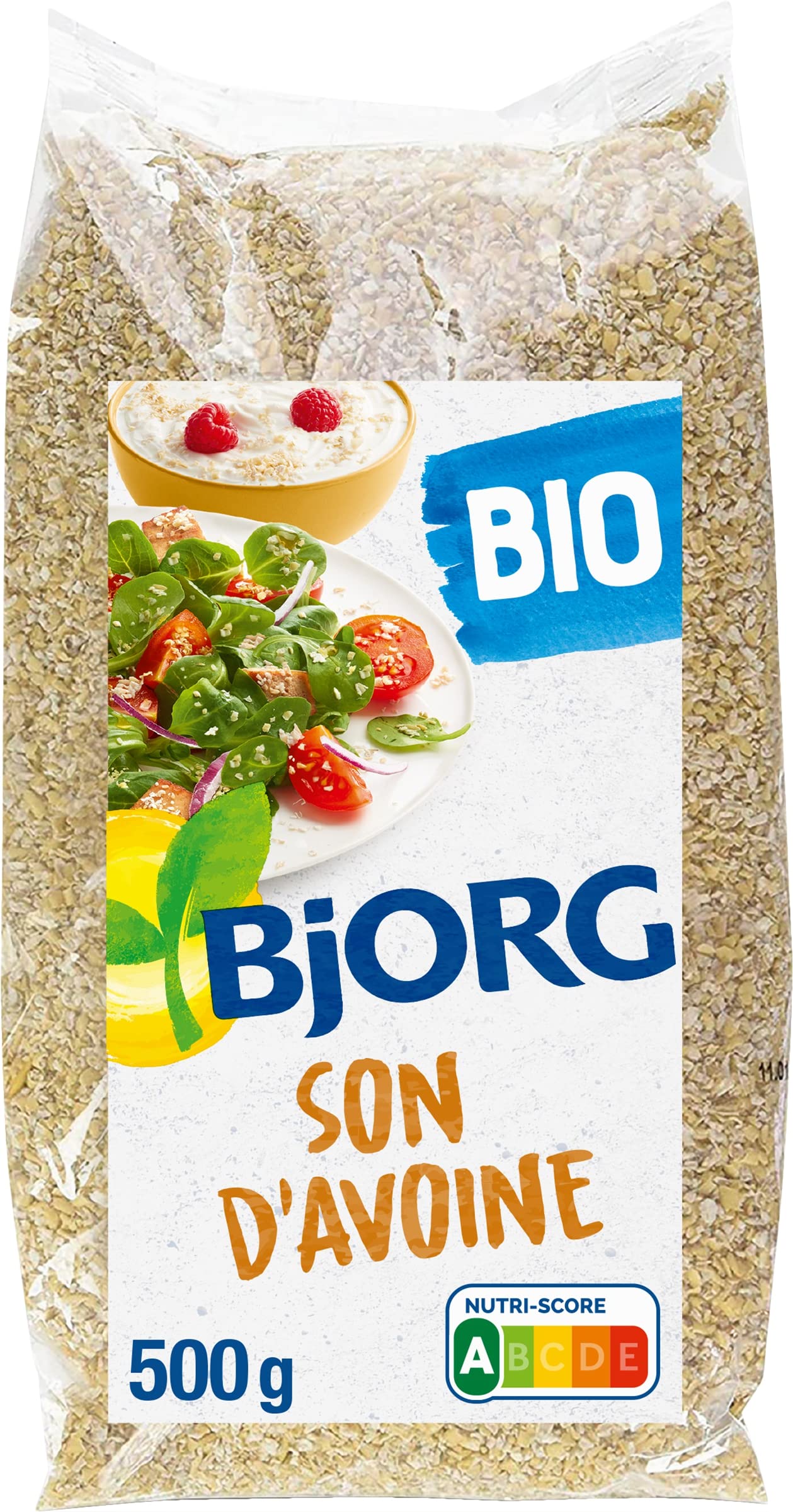 Bjorg has selected for you the most fiber-concentrated part of the oat grain, to offer you an organic oat bran, naturally rich in fiber and a source of protein. Thus, bjorg oat bran can help you reach the daily intake of 30g of fiber recommended by nutritionists. Weight: 500g INGREDIENTS Oat bran Allergens: GLUTEN, OATS DIRECTIONS FOR USE We suggest you consume 2 to 3 tablespoons of Bjorg oat bran per day. You can sprinkle Bjorg oat bran on your raw vegetables, soups or in your dairy products, or add it to your preparations for pancakes, bread dough and pastries as you wish! DISCLAIMER Photography not contractual. The above information is given for information purposes only. They are not necessarily exhaustive and cannot replace the information appearing on the product packaging, which alone is authentic and to which you are invited to refer, particularly in the event of food intolerance. Organic and plant-based since forever: A pioneer in organic food for the general public since 1988, Bjorg offers plant-based and gourmet alternatives to traditional foods, to delight you while increg the proportion of plants in your meals. How to enjoy this product?: Bjorg oat bran can be added to your smoothies, yogurts, cereals, or used in baking recipes to increase the nutritional value and texture while remaining a healthy and tasty choice. Ideal for your recipes: It can be easily incorporated into various preparations, such as smoothies, yogurts, or even in baking recipes, to add a pleasant texture and a nutritional boost. High in fiber: Its high fiber content helps maintain good intestinal transit and promote healthy digestion, thus contributing to a balanced diet. Organic oat bran: This oat bran is made from 100 organic ingredients, guaranteeing optimal quality and an environmentally friendly choice. Bjorg a sélectionné pour vous la partie la plus concentrée en fibres du grain d'avoine, pour vous proposer un son d'avoine bio, naturellement riche en fibres et source de protéines. Ainsi le son d'avoine bjorg peut vous aider à atteindre la dose journalière de 30g de fibres conseillée par les nutritionnistes. Grammage : 500g INGRÉDIENTS Son d'avoine Allergènes : GLUTEN, AVOINE MODE D'EMPLOI Nous vous suggérons de consommer 2 à 3 cuillères à soupe de son d'avoine Bjorg par jour. Vous pouvez saupoudrer le son d'avoine Bjorg sur vos crudités, potages ou dans vos laitages, ou bien l'intégrerà vos préparations pour galettes, pâtes à pain et pâtisseries au gré de vos envies ! CLAUSE DE NON-GARANTIE Photographie non contractuelle. Les indications ci-dessus sont données à titre d'information. Elles ne sont pas forcément exhaustives et ne sauraient se substituer aux informations figurant sur l'emballage du produit qui font seules foi, et auxquelles vous êtes invités à vous reporter, notamment en cas d'intolérance alimentaire. Bio et végétale depuis toujours : Pionnière du bio grand public depuis 1988, Bjorg propose des alternatives végétales et gourmandes aux aliments traditionnels, pour vous régaler tout en augmentant la part de végétal dans vos repas. Comment savourer ce produit ? : Le son d'avoine Bjorg peut être ajouté à vos smoothies, yaourts, céréales, ou utilisé dans des recettes de pâtisseries pour en augmenter la valeur nutritive et la texture tout en restant un choix sain et savoureux. Idéal pour vos recettes : Il s'intègre facilement dans diverses préparations, comme les smoothies, les yaourts, ou même dans des recettes de pâtisseries, pour ajouter une texture agréable et un boost nutritif. Riche en fibres : Sa teneur élevée en fibres aide à maintenir un bon transit intestinal et à favoriser une digestion saine, contribuant ainsi à une alimentation équilibrée. Son d'avoine bio : Ce son d'avoine est fabriqué à partir d'ingrédients 100 biologiques, garantissant une qualité optimale et un choix respectueux de l'environnement.