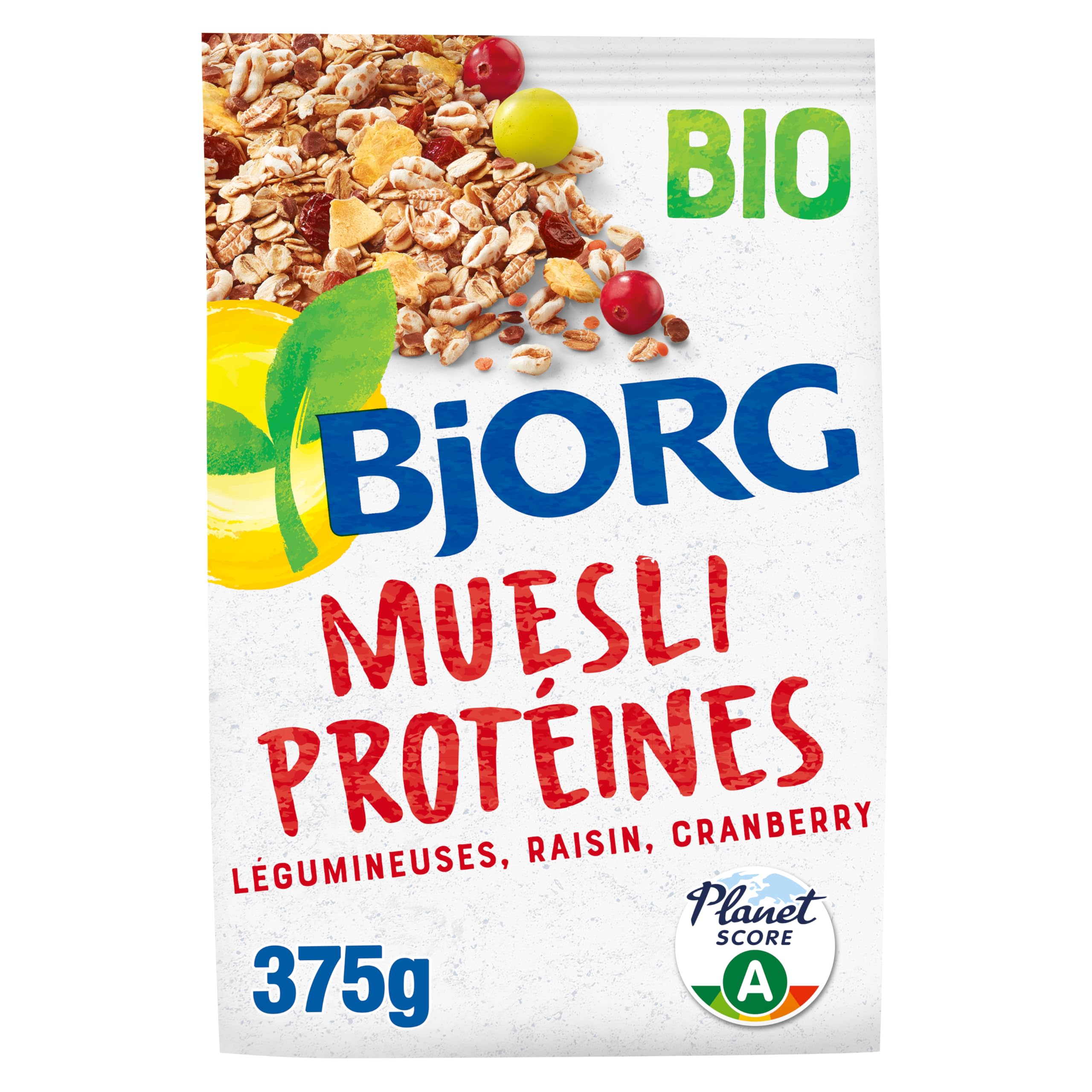 The first brand to offer organic products sold in supermarkets, Bjorg was born in France in 1988 with a simple ambition: to provide everyone with access to organic, healthy and balanced food that combines taste, quality and deliciousness. Created by a nutritionist, Bjorg is a French brand which, in addition to being a pioneer of organic products for the general public, is constantly seeking to improve by expanding its range of plant-based drinks, organic cereals, energy bars, organic biscuits, vegan desserts and other references that have made it famous for over 30 years. 100 organic, but also ethical, the entire Bjorg range is guaranteed without palm oil. Certified B-Corp in 2017, the brand also created the Bjorg, Bonneterre and Citoyens foundation encouraging a healthy, sustainable eating model that is better connected to nature. At Bjorg, each ingredient is carefully chosen for its nutritional qualities, giving pride of place to fiber, wholemeal flour and natural sugars and limiting the use of white flour, refined sugars and salt as much as possible. Thanks to its carefully thought-out recipes, Bjorg also reduces the saturated fatty acid content of its products, to help you consume less on a daily basis. 70 of Bjorg references display a Nutri-Score of A or B, almost all of them are suitable for vegetarians. Perfect for stocking up on energy, Bjorg cereals accompany all your gourmet desires. Made from whole grains, they help increase your fiber and mineral intake in a simple and tasty way. Muesli Without Added Sugars contains oats, spelled and a mixture of fruits. Containing only the sugars naturally present in its ingredients, it is ideal for starting the day well and fits wonderfully into all vegetarian recipes! INGREDIENTS Whole oat flakes, crispy oat flakes (oat flakes, honey), sprouted coral lentils 7.4 , chickpea flakes 7.4 , spelled flakes (wheat), spelled (wheat) puffs, raisins 3.8 (raisins, sunflower oil), dried cranberries 3.8 (cranberries, concentrated apple juice, sunflower oil), hazelnuts chopped toasted, flax seeds, buckwheat, chopped blanched almonds, toasted coconut shavings. Organic ingredients. May contain traces of milk, other nuts, sesame seeds and soy.ORGANIC AND PLANT-BASED SINCE ALWAYS: A pioneer in organic products for the general public since 1988, Bjorg offers plant-based and gourmet alternatives to traditional foods, to delight you while increg the proportion of plants in your meals. HOW TO ENJOY THIS MUESLI?: This muesli can be enjoyed by mixing it with a plant-based drink, with or without other fresh or dried fruits. It can also be incorporated into a verrine, dessert or smoothie recipe. ECO-FRIENDLY PACKAGING: Made in Germany, the packaging of this muesli is made from 50 sugarcane, a renewable material, and is small in size to limit its impact on the environment. THE ADVANTAGES OF THIS MUESLI: 100 Organic, this muesli is made from a recipe based on whole grains: the oats come from selected 100 organic farms, all without added sugars other than those present in its ingredients. LEGUME PROTEIN MUESLI: Discover our new protein muesli based on legumes, grapes and cranberries. With no added sugars, it is the ideal ally for a balanced breakfast. Première marque à proposer des produits bio vendus en grande surface, Bjorg est née en France, en 1988, avec une ambition simple : permettre à tous d'accéder à une alimentation biologique, saine et équilibrée qui allie goût, qualité et gourmandise. Créée par une nutritionniste, Bjorg est une marque française qui, en plus d'être une pionnière du bio grand public, cherche sans cesse à s'améliorer en élargissant sa gamme de boissons végétales, céréales bio, barres énergétiques, biscuits bio, desserts vegan et autres références qui font sa célébrité depuis plus de 30 ans. 100 biologique, mais aussi éthique, toute la gamme Bjorg est garantie sans huile de palme. Certifiée B-Corp en 2017, la marque a également créé la fondation Bjorg, Bonneterre et Citoyens encourageant un modèle d'alimentation sain, durable et mieux connecté à la nature. Chez Bjorg, chaque ingrédient est choisi avec soin pour ses qualités nutritionnelles en faisant la part belle aux fibres, farines complètes et sucres naturels et en limitant au maximum l'utilisation de farine blanche, de sucres raffinés et de sel. Grâce à ses recettes minutieusement pensées, Bjorg réduit aussi la teneur en acides gras saturés de ses produits, pour vous aider à en consommer moins au quotidien. 70 des références Bjorg affichent un Nutri-Score de A ou B, quasiment toutes conviennent aux végétariens. Parfaites pour faire le plein d'énergie, les céréales Bjorg accompagnent toutes vos envies gourmandes. À base de céréales complètes, elles aident à augmenter votre consommation de fibres et de minéraux de façon simple et savoureuse. Le Muesli Sans Sucres Ajoutés contient de l'avoine, de l'épeautre et un mélange de fruits. Ne renfermant que les sucres naturellement présents dans ses ingrédients, il est idéal pour bien commencer la journée et s'intègre à merveille dans toutes les recettes végétariennes ! INGRÉDIENTS Flocons d'avoine complète, flocons croustillants d'avoine (flocons d'avoine, miel), lentilles corail germées 7,4 , flocons de pois chiche 7,4 , flocons d'épeautre (blé),épeautre (blé) soufflé, raisins secs 3,8 (raisins secs, huile de tournesol), cranberries séchées 3,8 (cranberries, jus de pomme concentré, huile de tournesol),noisettes grillées hachées, graines de lin, sarr,amandes emondées hachées, copeaux de noix de coco toastés.Ingrédients biologiques. Peut contenir des traces de lait, d'autres fruits à coque, de graines de sésame et de soja.BIO ET VÉGÉTALE DEPUIS TOUJOURS : Pionnière du bio grand public depuis 1988, Bjorg propose des alternatives végétales et gourmandes aux aliments traditionnels, pour vous régaler tout en augmentant la part de végétal dans vos repas. COMM