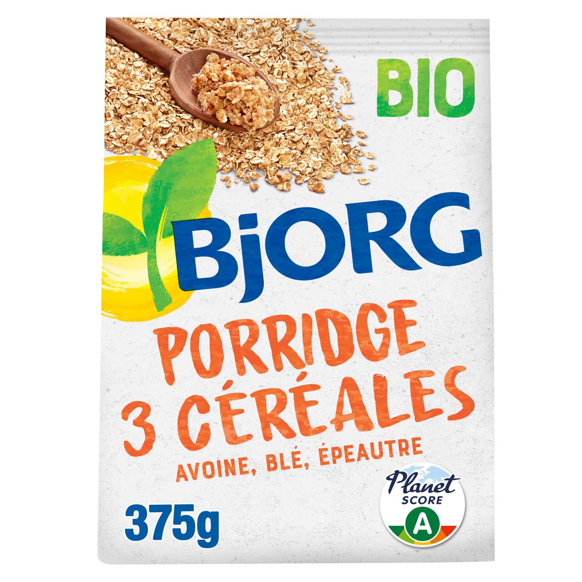 The first brand to offer organic products sold in supermarkets, Bjorg was born in France in 1988 with a simple ambition: to provide everyone with access to organic, healthy and balanced food that combines taste, quality and deliciousness. Created by a nutritionist, Bjorg is a French brand which, in addition to being a pioneer of organic products for the general public, is constantly seeking to improve by expanding its range of plant-based drinks, organic cereals, energy bars, organic biscuits, vegan desserts and other references that have made it famous for over 30 years. 100 organic, but also ethical, the entire Bjorg range is guaranteed without palm oil. Certified B-Corp in 2017, the brand also created the Bjorg, Bonneterre and Citoyens foundation encouraging a healthy, sustainable eating model that is better connected to nature. At Bjorg, each ingredient is carefully chosen for its nutritional qualities, giving pride of place to fiber, wholemeal flour and natural sugars and limiting the use of white flour, refined sugars and salt as much as possible. Thanks to its carefully thought-out recipes, Bjorg also reduces the saturated fatty acid content of its products, to help you consume less on a daily basis. 70 of Bjorg references display a Nutri-Score of A or B, almost all of them are suitable for vegetarians. Perfect for stocking up on energy, Bjorg cereals accompany all your gourmet desires. Made from whole grains, they help increase your fiber and mineral intake in a simple and tasty way. A typical breakfast from the Nordic countries, porridge is a delicious way to enjoy a balanced breakfast, rich in fiber and protein. Bjorg 3-grain Porridge can be enjoyed alone or with fruit to start the day off on the right foot. INGREDIENTS Mixture of 3 whole grains oats, wheat, speltORGANIC AND PLANT-BASED SINCE ALWAYS: A pioneer in organic food for the general public since 1988, Bjorg offers plant-based and gourmet alternatives to traditional foods, to delight you while increg the proportion of plants in your meals. HOW TO ENJOY THESE ORGANIC CEREALS?: This instant porridge is prepared by mixing 1 cup of porridge in 3 cups of water in a saucepan. Bring to a boil and simmer over low heat for 3 or 4 minutes. ECO-FRIENDLY PACKAGING: Made in Germany, the packaging of this cereal is made from 50 sugarcane, a renewable material, and is small in size to limit its impact on the environment. THE ADVANTAGES OF THIS GOURMET PORRIDGE: This delicious porridge made from whole grains (oats, wheat, spelt) is the result of a simple recipe with no added sugars other than those naturally present in the ingredients. BJORG 3-GRAIN PORRIDGE: Bjorg's organic 3-grain porridge offers a delicious way to enjoy a traditional Nordic breakfast, a source of fiber and protein to kick-start your day. ORGANIC AND PLANT-BASED SINCE 1988: A pioneer in organic food for the general public since 1988, Bjorg offers delicious plant-based alternatives to traditional foods, so you can enjoy them while increg the plant-based portion of your meals. HOW TO ENJOY THIS ORGANIC CEREAL?: This instant porridge is prepared by mixing 1 cup of porridge with 3 cups of water in a saucepan. Bring to a boil and simmer over low heat for 3 to 4 minutes. ECO-FRIENDLY PACKAGING: Made in Germany, the packaging for this cereal is made from 50 sugarcane, a renewable material, and is smaller to limit its impact on the environment. THE BENEFITS OF THIS GOURMET PORRIDGE: This delicious porridge made with whole grains (oats, wheat, spelt) is the result of a simple recipe with no added sugars other than those naturally present in the ingredients. BJORG 3-GRAIN PORRIDGE: Bjorg's organic 3-grain porridge offers you a delicious way to enjoy a traditional Nordic breakfast, a source of fiber and protein, to start the day off right. Première marque à proposer des produits bio vendus en grande surface, Bjorg est née en France, en 1988, avec une ambition simple : permettre à tous d'accéder à une alimentation biologique, saine et équilibrée qui allie goût, qualité et gourmandise. Créée par une nutritionniste, Bjorg est une marque française qui, en plus d'être une pionnière du bio grand public, cherche sans cesse à s'améliorer en élargissant sa gamme de boissons végétales, céréales bio, barres énergétiques, biscuits bio, desserts vegan et autres références qui font sa célébrité depuis plus de 30 ans. 100 biologique, mais aussi éthique, toute la gamme Bjorg est garantie sans huile de palme. Certifiée B-Corp en 2017, la marque a également créé la fondation Bjorg, Bonneterre et Citoyens encourageant un modèle d'alimentation sain, durable et mieux connecté à la nature. Chez Bjorg, chaque ingrédient est choisi avec soin pour ses qualités nutritionnelles en faisant la part belle aux fibres, farines complètes et sucres naturels et en limitant au maximum l'utilisation de farine blanche, de sucres raffinés et de sel. Grâce à ses recettes minutieusement pensées, Bjorg réduit aussi la teneur en acides gras saturés de ses produits, pour vous aider à en consommer moins au quotidien. 70 des références Bjorg affichent un Nutri-Score de A ou B, quasiment toutes conviennent aux végétariens. Parfaites pour faire le plein d'énergie, les céréales Bjorg accompagnent toutes vos envies gourmandes. À base de céréales complètes, elles aident à augmenter votre consommation de fibres et de minéraux de façon simple et savoureuse. Petit-déjeuner typique des pays nordiques, le porridge est une manière délicieuse pour profiter d'un petit-déjeuner équilibré, riche en fibres et en protéines. Le Porridge 3 céréales Bjorg peut se déguster seul ou agrémenté de fruits pour démarrer la journée du bon pied. INGRÉDIENTS Mélange de 3 céréales complètes avoine, blé, épeautreBIO ET VÉGÉTALE DEPUIS TOUJOURS : Pionnière du bio grand public depuis 1988, Bjorg propose des alternatives végétales et gourmandes aux aliments traditionnels,