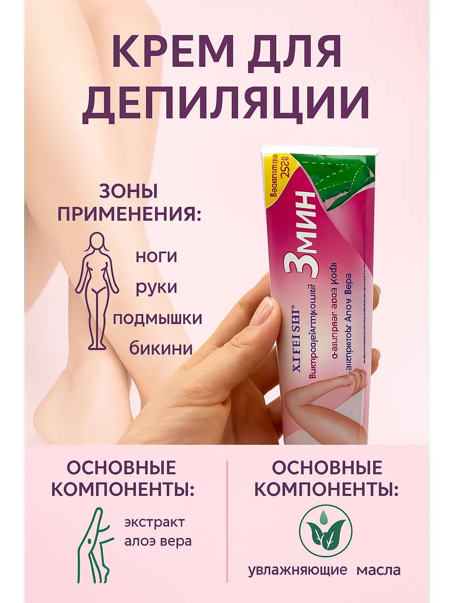 Быстродействующий крем для депиляции Xifeishi с экстрактом алоэ вера — это современное средство для безболезненного удаления волос в домашних условиях. Эффективная формула нового поколения деликатно растворяет нежелательные волосы на ногах, руках, в области подмышек и бикини, обеспечивая идеальную гладкость кожи всего за 3 минуты.