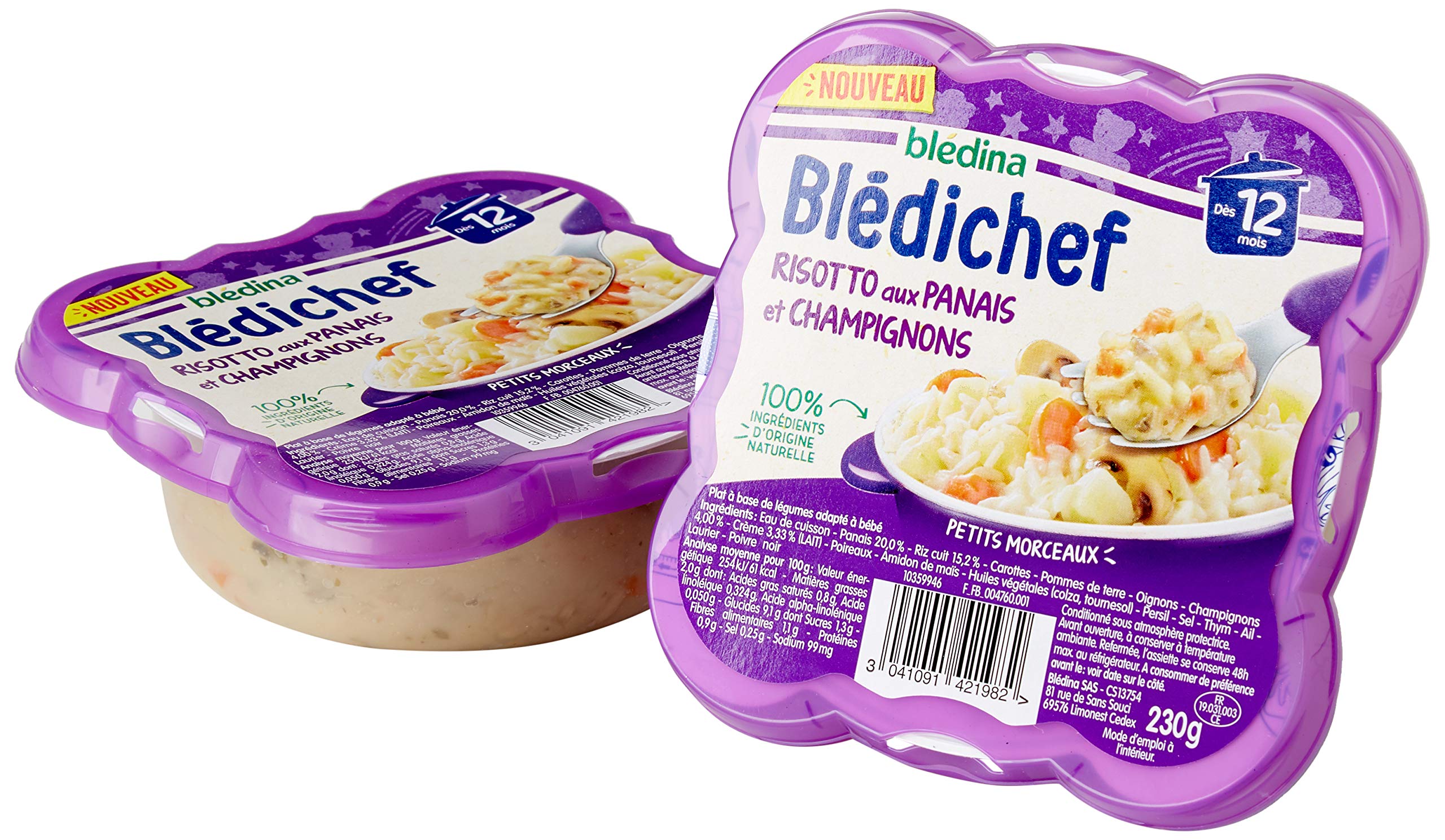 BLÉDINA: For over 110 years, Blédina has been committed to providing health through nutrition during the first 1000 days of a baby's life. With the desire to pass on good eating habits to all babies, Blédina is a certified B-Corp and is committed to meeting social and environmental criteria. Ingredients: Cooking water - Parsnips 20.0 - Cooked rice 15.2 - Carrots - Potatoes - Onions - Mushrooms 4.00 - Cream 3.33 (MILK) - Leeks - Corn starch - Vegetable oils (rapeseed, sunflower) - Parsley - Salt - Thyme - Garlic - Bay leaf - Black pepper. Instructions for use: Heat in a double boiler or microwave. Detailed instructions on the lid. Safety Warning: Add a drizzle of oil blend, but no salt. See more