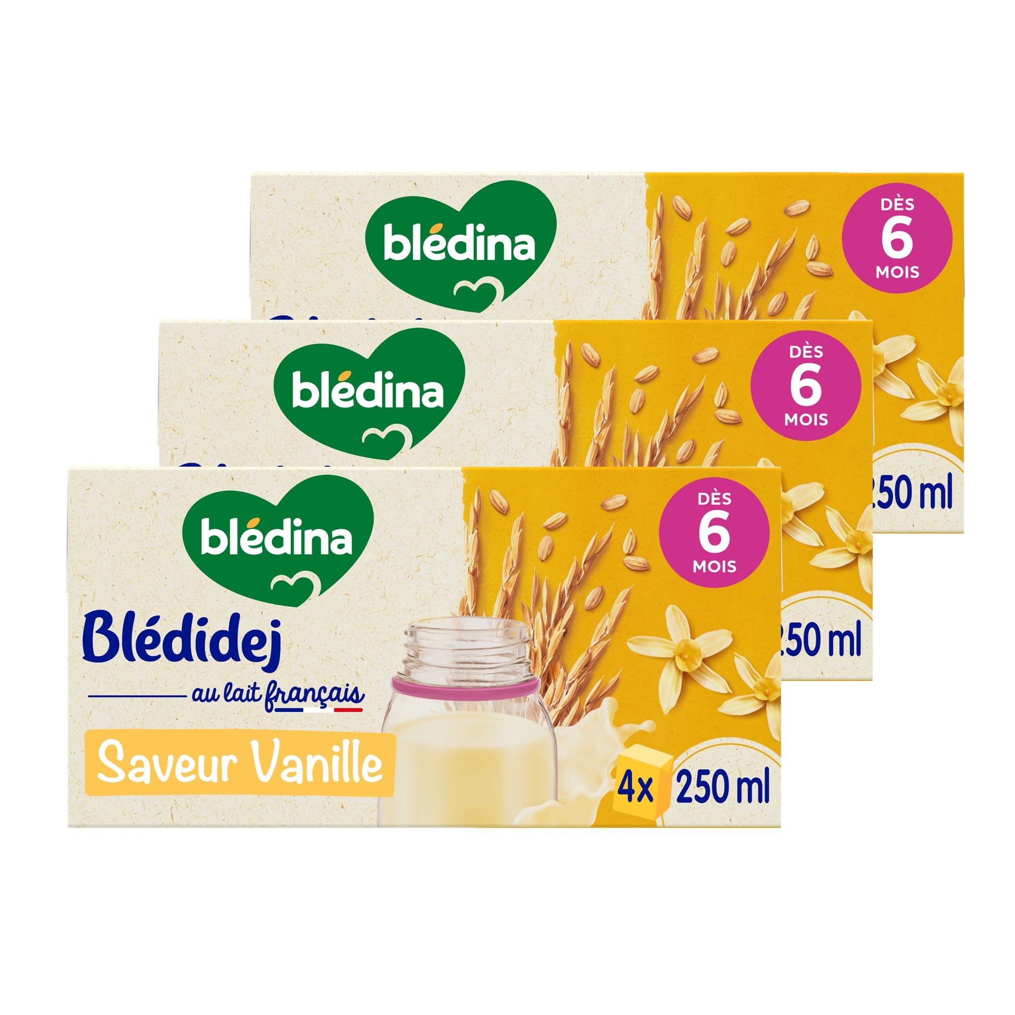 Blédidej 6-Month Baby Food containing 12 x 250ml cartons Pack of 3 x 4 cartons Vanilla Flavor. Convenient Blédidej 6-month baby food: ready-to-use cartons. 1 carton 1 bottle. Blédidej 6-month baby cereals and milk for a delicious and suitable breakfast for your baby Smooth texture. Blédidej Blédina Vanilla Flavor Baby Cereal with Follow-On Milk 6-month baby meal No artificial colors or preservatives, in accordance with regulations. 12 Cartons (3 x 4 cartons) Blédina Bledidej Growth Vanilla Flavor Milk-based cereals for baby meals from 6 months.
