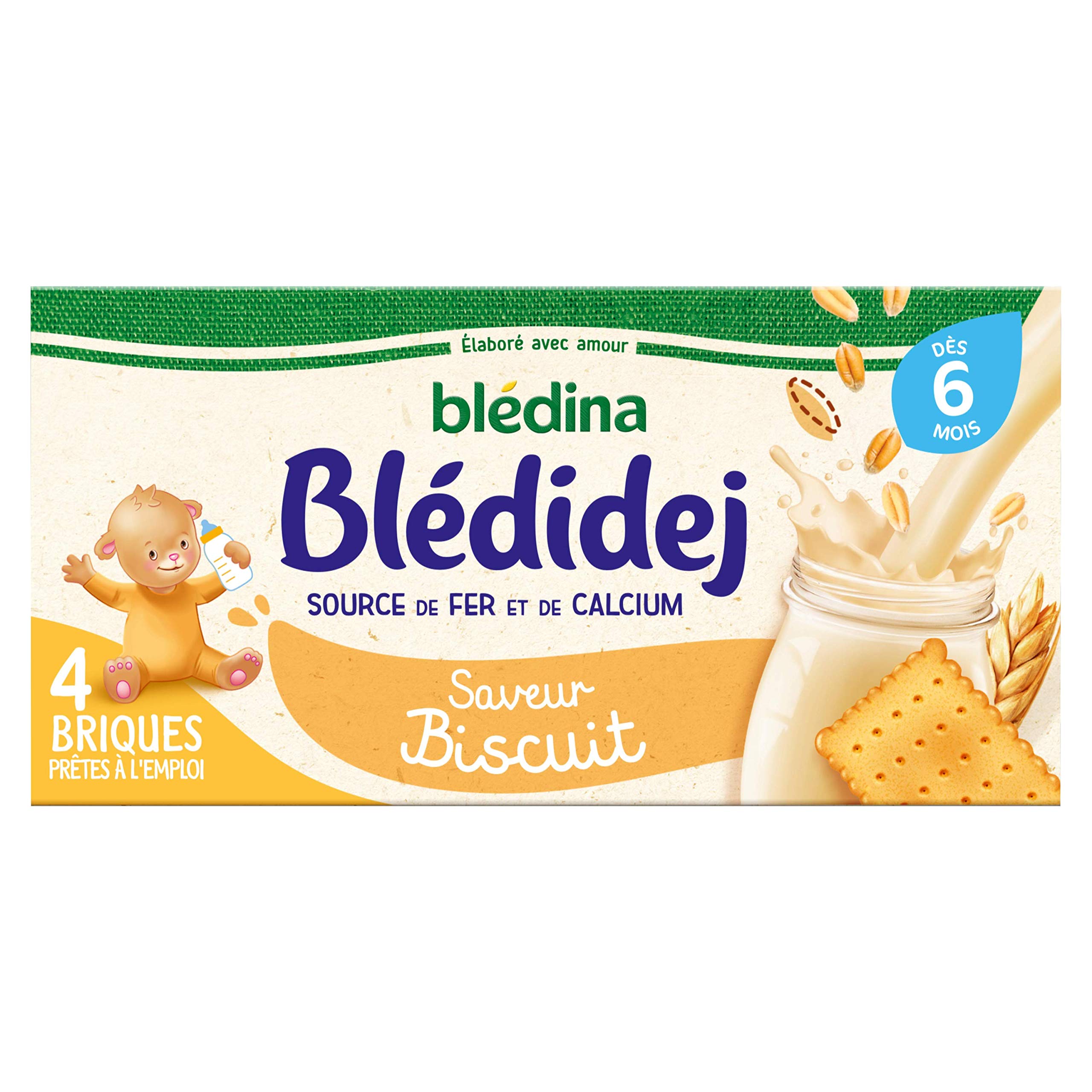 Developed by our nutritionists, specialists in feeding babies up to 3 years old, Blédidej is: a complete and balanced dinner for your baby. Blédidej has a creamy texture and delicious flavors to delight baby at breakfast! BLEDIDEJ biscuit 4x250ml6m Moving and playing is essential for your child's development www.mangerbouger.frPackaged in a protective atmosphere. Blédina BP 432 - 69654 Villefranche-sur-Saône Cedex France INGREDIENTS Ingredients: Follow-on MILK 90 [skimmed MILK - Water - Maltodextrins - Vegetable fats (palm, copra (SOYA), rapeseed, sunflower) - Lactose (MILK) - Emulsifier: SOYA lecithin - Antioxidant: extract rich in tocopherols - Vitamins (A, D3, E, C, B1, B2, PP, B6, B9, B12, B8, B5, K1) - Minerals (sodium citrate, ferric diphosphate, calcium phosphate, zinc and copper sulfates, calcium carbonate, sodium bicarbonate, potassium iodide)] - Infant cereals 10 [Wheat (GLUTEN) and rice flours 3.1 - Sugar - Partially skimmed MILK powder - Processed corn starch - Maltodextrins - Caramel - Vegetable fats (palm, copra (SOYA), rapeseed, sunflower) - Flavor - Emulsifier: SOYA lecithin - Vitamin C]. Allergens: GLUTEN, MILK, SOY DIRECTIONS FOR USE Before opening, store at room temperature in a clean, dry place. After opening, keep closed for a maximum of 48 hours in the refrigerator. DISCLAIMER Non-contractual photography. The above indications are given for information purposes. They are not necessarily exhaustive and cannot replace the information appearing on the product packaging which alone is authentic, and to which you are invited to refer, particularly in the event of food intolerance. The 4 bricks of 250ml. Elaboré par nos nutritionnistes, spécialistes de l'alimentation des bébés jusqu'à 3 ans, Blédidej c'est : un dîner complet et équilibré pour votre bébé.Blédidej, c'est une texture onctueuse et des saveurs gourmandes pour régaler bébé au petit déjeuner ! BLEDIDEJ biscuité 4x250ml6m Bouger, jouer est indispensable au développement de votre enfant www.mangerbouger.frConditionné sous atmosphère protectrice. blédina BP 432 - 69654 Villefranche-sur-Saône Cedex France INGRÉDIENTS Ingrédients : LAIT de suite 90 [LAIT écrémé - Eau - Maltodextrines - Matières grasses végétales (palme, coprah (SOJA), colza, tournesol) - Lactose (LAIT) - Emulsifiant : lécithine de SOJA - Antioxydant : extrait riche en tocophérols - Vitamines (A,D3, E, C, B1, B2, PP, B6, B9, B12, B8, B5, K1) - Minéraux (citrate de sodium, diphosphate ferrique, phosphate de calcium, sulfates de zinc et de cuivre, carbonate de calcium, bicarbonate de sodium, iodure de potassium)] - Céréales infantiles 10 [F arines de blé (GLUTEN) et de riz 3,1 - Sucre - Poudre de LAIT partiellement écrémé - Amidon transformé de maïs - Maltodextrines - Caramel - Matières grasses végétales (palme, coprah (SOJA), colza, tournesol) - Arôme - Emulsifiant : lécithine de SOJA - Vitamine C]. Allergènes : GLUTEN, LAIT, SOJA MODE D'EMPLOI Avant ouverture, conserver à température ambiante dans un endroit propre et sec. Après ouverture, conserver refermé, maximum 48 heures au réfrigérateur. CLAUSE DE NON-GARANTIE Photographie non contractuelle. Les indications ci-dessus sont données à titre d'information. Elles ne sont pas forcément exhaustives et ne sauraient se substituer aux informations figurant sur l'emballage du produit qui font seules foi, et auxquelles vous êtes invités à vous reporter, notamment en cas d'intolérance alimentaire. Les 4 briques de 250ml.