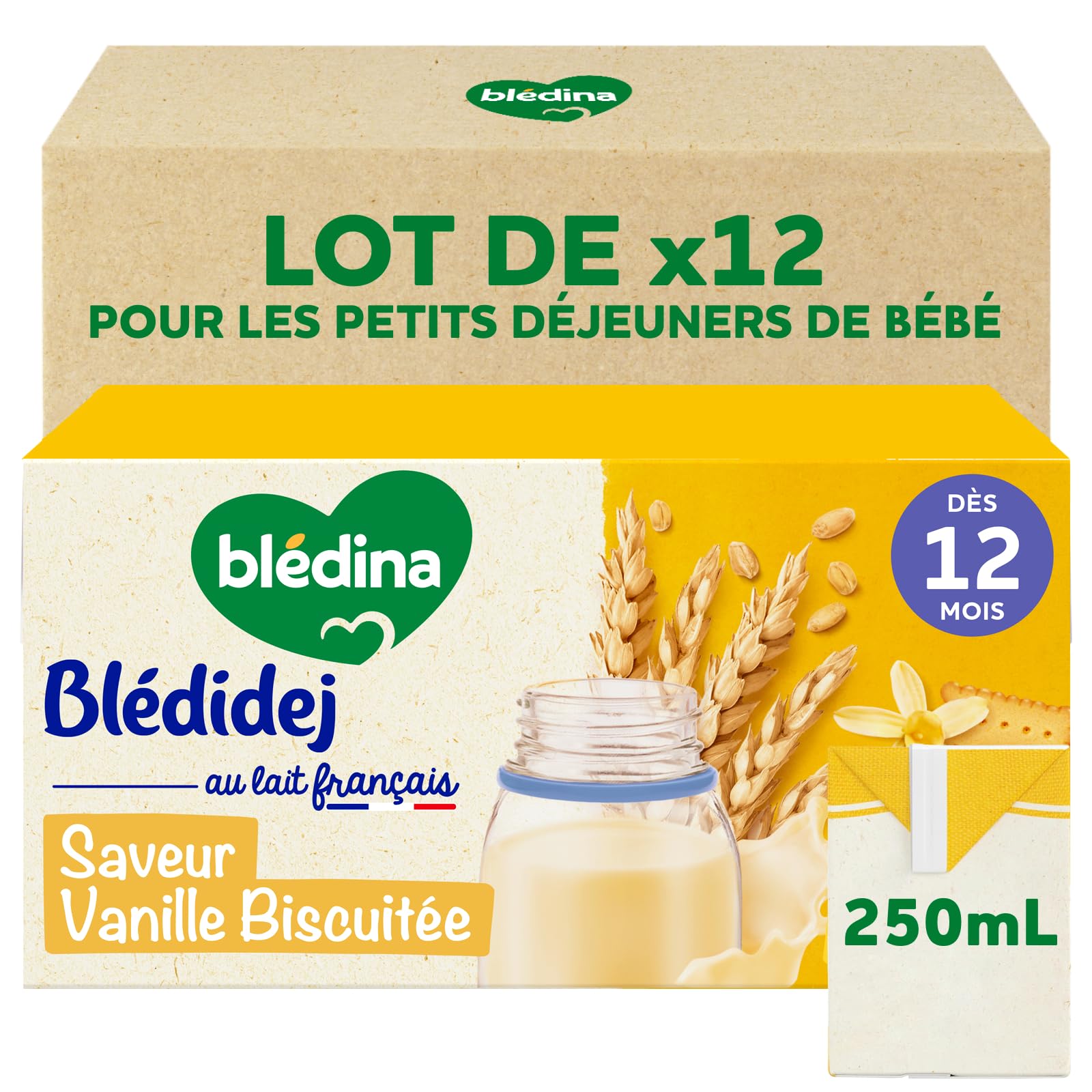 : Blédina Blédidej Growth, Vanilla Milk-Based Baby Cereal, From 12 Months, 250ml (3 x 4 cartons). The Blédidej range from Blédina is designed to delight your baby at breakfast: 12 cartons (3 x 4 cartons) of Blédina Blédidej Growth Vanilla flavor. As your baby's diet begins to diversify, breakfast plays a key role in this discovery of new flavors! It's also about increg energy intake to meet your baby's ever-growing nutritional needs. Designed to support you during this stage, the Blédidej range provides suitable and convenient breakfasts. Specially formulated to meet the needs of babies aged 6 to 9 months, the Blédidej range allows you to add cereal to their breakfast while continuing to provide the milk they so desperately need, as well as essential nutrients and minerals. A source of iron, calcium, and omega-3 fatty acids, Blédidej cartons offer babies a smooth, creamy texture, ideal for transitioning from the completely smooth texture of breast milk. By 12 months, some children are already standing while others are crawling at full speed. More than ever, it's important to remember the importance of breakfast, which should provide 25 of your little one's daily energy needs. The Blédidej Growth range will help your child get the energy they need to explore the world. This delicious blend of cereals and dairy contains the essential nutrients and vitamins for healthy development: calcium for bone growth, omega-3 fatty acids, and iron. One Blédidej Growth carton is enough to meet your baby's breakfast needs. Ingredients: Skimmed milk 45.6 (MILK) - Water - Maltodextrin - Flours [wheat 3.0 (GLUTEN), rice 0.05 ] - Vegetable fats (palm, coconut, rapeseed, sunflower) - Sugar - Corn starch - Lactose (MILK) - Whole milk (MILK) - Emulsifier: soy lecithin (SOY) - Acidity regulators (sodium bicarbonate, potassium hydroxide) - Minerals (calcium carbonate, ferric diphosphate, zinc sulfate and potassium iodide) - Caramel (sugar, water) - Flavoring - Vitamins (A, E, D3, K1, C, B1, B2, B3, B6, B9, B12, B5 and B8) - Dextrose - Antioxidant: tocopherol-rich extract A.on('a:expander:toggle_description:toggle:collapse', function(data) { window.scroll(0, data.expander. expander[0].offsetTop-100) }) }) Instructions for use: Ready-to-use brick or consume warm. Do not boil or heat the brick directly in a microwave oven. Do not add sugar. See moreSMOOTH RECIPE: A delicious blend of cereals in a tasty carton. ESSENTIAL NUTRIENTS: A balanced dairy intake containing omega-3 (alpha-linolenic acid) and minerals such as iron and calcium, which contribute to your child's bone growth. CONVENIENT FORMAT: Easy to measure and pour to delight your baby, a format that allows you to adjust the quantity according to your child's appetite. BABY BREAKFAST: Blédidej Baby Milk-Based Biscuit Cereal with Vanilla Flavor is a delicious milk-based cereal with a mild taste and smooth texture to start the day right.Description du produit Blédina Blédidej Croissance, Céréales bébé Lactées Vanille, Dès 12 Mois, 250ml (3x4 briques). La gamme Blédidej de Blédina est une gamme pour régaler bébé au petit déjeuner : 12 Briques (3x4 briques) Blédina Bledidej Croissance saveur Vanille. l'alimentation de bébé peut commencer à se diversifier. Et le petit-déjeuner participe à cette découverte de nouvelles saveurs ! Il s'agit aussi d'augmenter les apports énergétiques pour couvrir les besoins nutritionnels de bébé qui ne cessent de croître de mois en mois. Pensée pour vous accompagner dans cette étape, la gamme Blédidej vous assure des petits déjeuners adaptés et pratiques. Spécialement conçue pour répondre aux besoins des bebe de 6 à 9 mois, la gamme Bledidej permet d'agrémenter leur petit-déjeuner de céréales, tout en continuant à leur fournir l'apport lacté dont ils ont tant besoin, mais aussi des nutriments et minéraux essentiels. Source de fer, de calcium ou encore d'oméga 3, les briques Blédidej vont leur permettre de découvrir une texture onctueuse, idéale pour faire la transition avec la texture totalement lisse du lait maternel. A l'âge de 12 mois, certains enfants sont déjà dressés sur leurs jambes quand les autres crapahutent à toute vitesse à quatre pattes. Plus que jamais, il convient donc de ne pas oublier l'importance du petit déjeuner qui doit couvrir 25 des besoins énergétiques journaliers de votre bambin. La gamme Bledidej croissance va aider votre loulou à faire le plein d'énergie pour découvrir le monde. Ce savoureux mélange de céréales et d'apport lacté contient les nutriments et vitamines essentiels à son bon développement : du calcium pour sa croissance osseuse, des oméga 3 ou encore du fer. Une brique Blédidej croissance suffit à couvrir les besoins de votre bébé au petit déjeuner. Ingrédients Lait écrémé 45,6 (LAIT) - Eau - Maltodextrines - Farines [blé 3,0 (GLUTEN), riz 0,05 ] - Matières grasses végétales (palme, coprah, colza, tournesol) - Sucre - Amidon de maïs - Lactose (LAIT) - Lait entier (LAIT) - Emulsifiant : lécithine de soja (SOJA) - Correcteurs d'acidité (bicarbonate de sodium, hydroxyde de potassium) - Minéraux (carbonate de calcium, diphosphate ferrique, sulfate de zinc et iodure de potassium) - Caramel (sucre, eau) - Arôme - Vitamines (A, E, D3, K1, C, B1, B2, B3, B6, B9, B12, B5 et B8) - Dextrose - Antioxydant : extrait riche en tocophérols P.when('A').execute(function(A) { A.on('a:expander:toggle_description:toggle:collapse', function(data) { window.scroll(0, data.expander. expander[0].offsetTop-100) }) }) Mode d'emploi Brique prête à l'emploi ou à consommer tiède. Ne pas faire bouillir, ni chauffer la brique directement au four à micro-ondes. Ne pas ajouter de sucre. Voir plusRECETTE ONCTUEUSE : un savoureux mélange de céréales dans une brique de gourmandise. DES NUTRIMENTS ESSENTIELS : Un apport lacté adapté contenant des omega 3 (Acide alpha-linolénique) et des minéraux comme le fer, ou le calcium qui p
