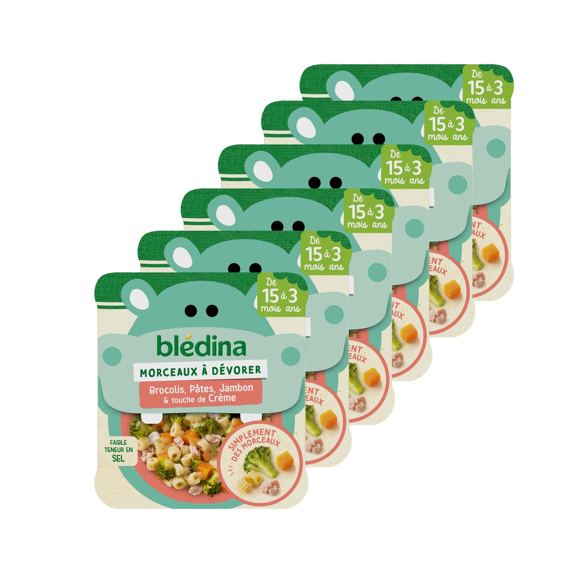 Bl dina Devouring Pieces - Small Baby Dishes - Broccoli Pasta Ham & Touch of Cream - From 15 Months - Pack of 6 Dishes of 200g