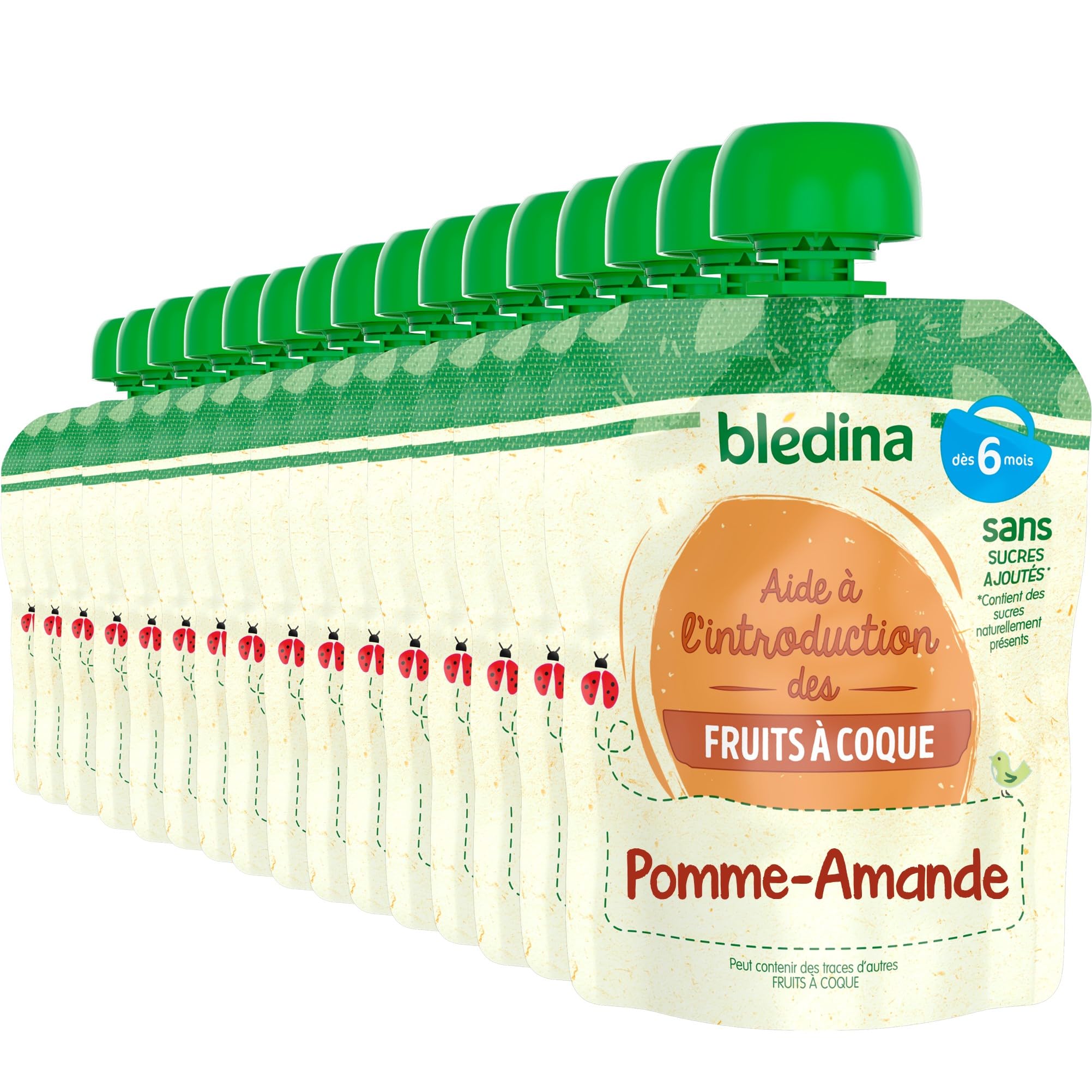 Blédina - Gourdes de Purées de Fruits et Amande - 16 gourdes Pomme Amande - Pour bébé dès 6 Mois - Lot de 16 gourdes de 85g