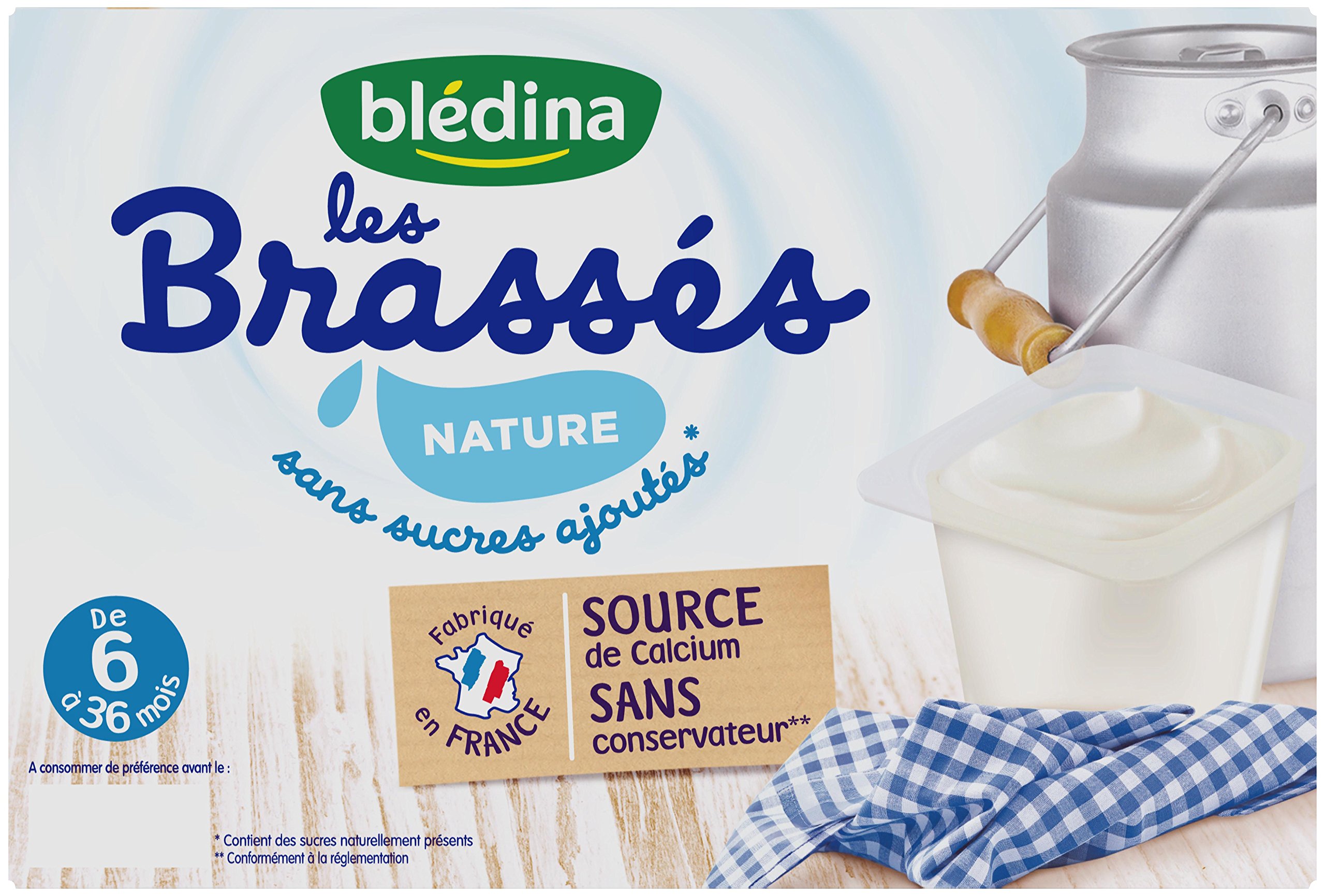 Discover the new natural brewed milk with no added sugar from blédina: Smooth recipes for baby's greatest pleasure! INGREDIENTS Ingredients: Rehydrated skimmed milk powder 75.0 (MILK) - Water - Cream 7.90 (MILK) - Transformed corn starch - Acidifier: Citric acid - Stabilizer: Pectin - Thickener: Carob seed flour - Flavoring - Emulsifier: Rapeseed monodiglycerides - Antioxidant: Ascorbic acid INSTRUCTIONS FOR USE Heat in a bain-marie or microwave. Detailed instructions on the seal. SAFETY WARNING Because after 6 months, breast milk or follow-on milk must remain baby's main source of milk, we recommend offering baby up to 1 cup of Brassés per day. Preservative-free, in accordance with regulations. Made in France. No added sugars (contains naturally occurring sugars). Découvrez les nouveaux brassés nature sans sucres ajoutés de blédina : Des recettes onctueuses pour le plus grand plaisir de bébé ! INGRÉDIENTS Ingrédients : Lait écrémé en poudre réhydraté 75,0 (LAIT) - Eau -Crème 7,90 (LAIT) - Amidon transformé de maïs - Acidifiant : Acidecitrique - Stabilisant : Pectine - Epaississant : Farine de graines decaroube - Arôme - Emulsifiant : Monodiglycérides de colza - Antioxydant: Acide ascorbique MODE D'EMPLOI Réchauffer au bain-marie ou au micro-ondes. Mode d'emploi détaillé sur l'opercule. AVERTISSEMENT DE SÛRETÉ Parce qu'après 6 mois le lait maternel ou de suite doit rester son principal apport lacté, nous vous recommandons de proposer à bébé jusqu'à 1 coupelle de Brassés par jour. Sans conservateur, conformément à la réglementation. Fabriqué en France. Sans sucres ajoutés (contient des sucres naturellement présents).