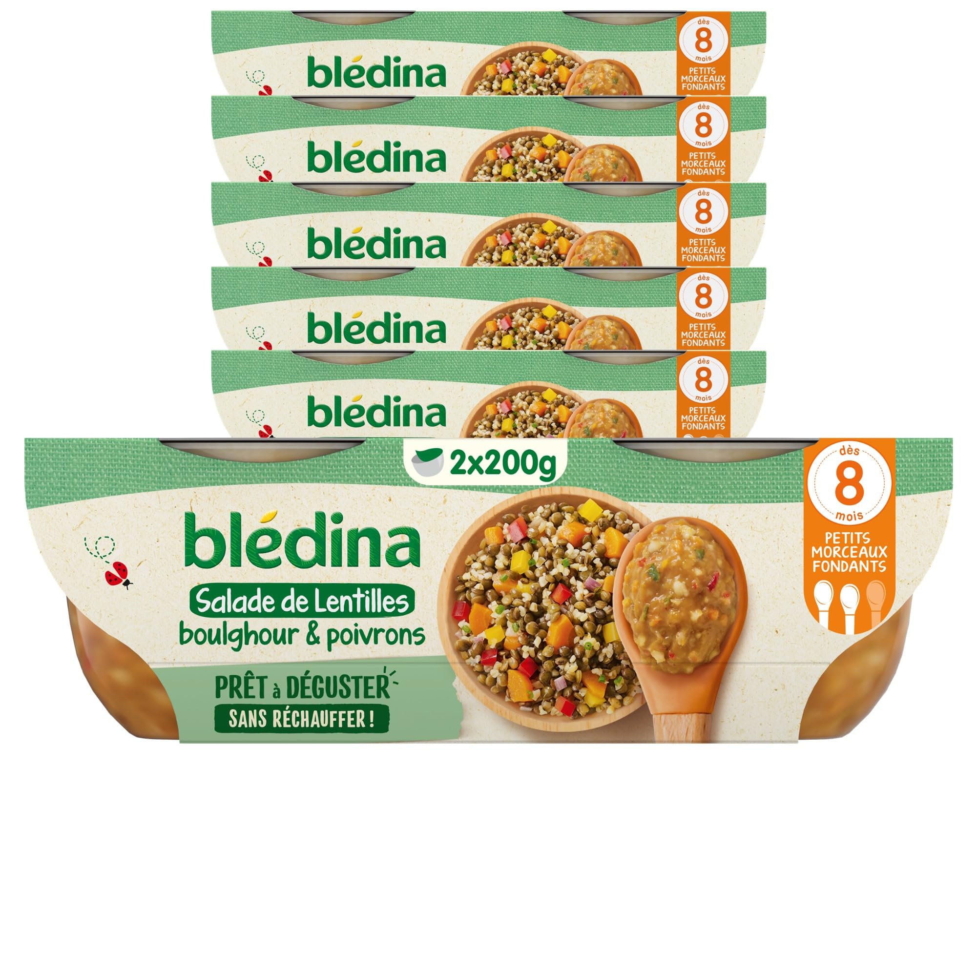 Blédina - Prêt à Déguster - Salade de Lentilles Boulghour Poivrons - Dès 8 mois - 12x200g Salade de Lentilles Boulghour et Poivrons