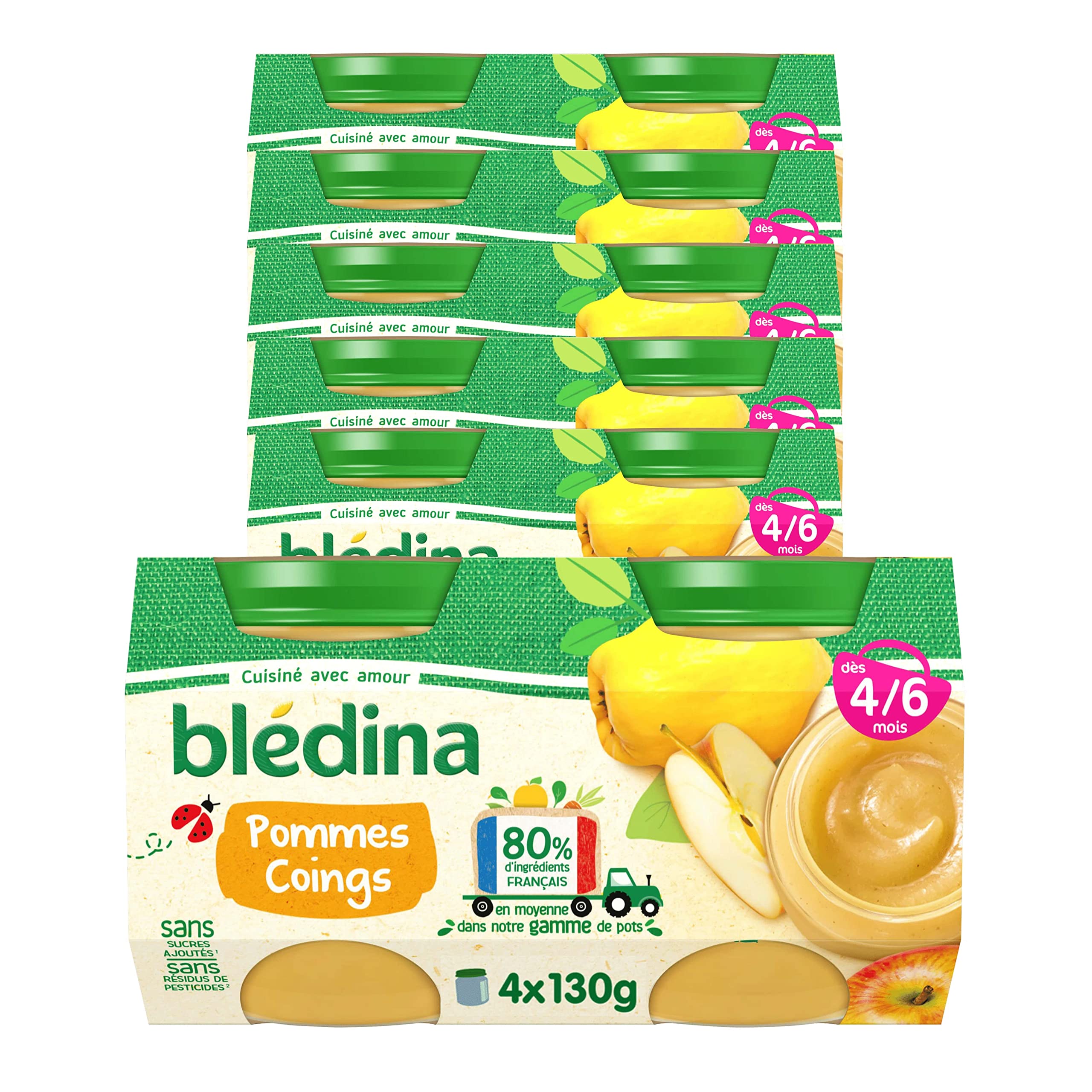 BLÉDINA: For over 110 years, Blédina has been committed to providing health through nutrition during the first 1000 days of a baby's life. With the desire to pass on good eating habits to all babies. Blédina is a certified B-Corp company and is committed to meeting social and environmental criteria. INGREDIENTS Ingredients: Apple puree 65.0 - Quince puree 35.0 - Antioxidant: Ascorbic acid - GLUTEN FREE DIRECTIONS FOR USE Before opening, store at room temperature in a clean, dry place. After opening, the closed jar can be kept for a maximum of 48 hours in the refrigerator. SAFETY WARNING Not Applicable BLEDINA - We have been working hand in hand with our chefs, nutritionists, and partner farmers for 110 years to develop delicious recipes using quality ingredients that will awaken every baby's taste buds. NO COLORS, no preservatives, in accordance with infant nutrition regulations. INGREDIENTS: 80 of our ingredients are French on average in our jar range. NO ADDED SUGAR: A fruit puree with no added sugars, containing only the natural sugars of fruit. LITTLE FRUIT POTS: Delicious fruit puree recipes for baby's snack, lunch, or dinner. Introduce baby to an incredible variety of fruits with all of our flavors in the fruit jar range. BLÉDINA : Depuis plus de 110ans, Blédina s'engage à apporter la santé par l'alimentation pendant les 1000 premiers jours de vie de bébé. Avec l'envie de transmettre les bonnes habitudes alimentaires à tous les bébés. Blédina est une entreprise certifiée B-Corp est s'engage à répondre aux critères sociaux et environnementaux. INGRÉDIENTS Ingrédients : Purée de pommes 65,0 - Purée de coings 35,0 -Antioxydant : Acide ascorbique - SANS GLUTEN MODE D'EMPLOI Avant ouverture, conserver à température ambiante dans un endroit propre et sec. Après ouverture, le pot refermé se conserve 48 heures maximum au réfrigérateur. AVERTISSEMENT DE SÛRETÉ Non Applicable BLEDINA - Nous travaillons main dans la main avec nos cuisiniers, nos nutritionnistes et nos agriculteurs partenaires afin d'élaborer de déliceuses recettes à partir d'ingrédients de qualité qui éveilleront les papilles de chaque bébé, et ce depuis 110ans. SANS COLORANT, sans conservateur, conformément à la réglementation de l'alimentation infantile. INGREDIENTS : 80 de nos ingrédients sont français en moyenne dans notre gamme des pots. SANS SUCRE AJOUTE : Une purée de fruits sans sucres ajoutées, contenant uniquement les sucres naturels des fruits. PETITS POTS DE FRUITS : de savoureuses recettes de purées de fruits pour le goûter, déjeuner ou dîner de bébé. Faites découvrir à bébé une incroyable variété de fruits avec l'ensemble de nos saveurs de la gamme pots de fruits.