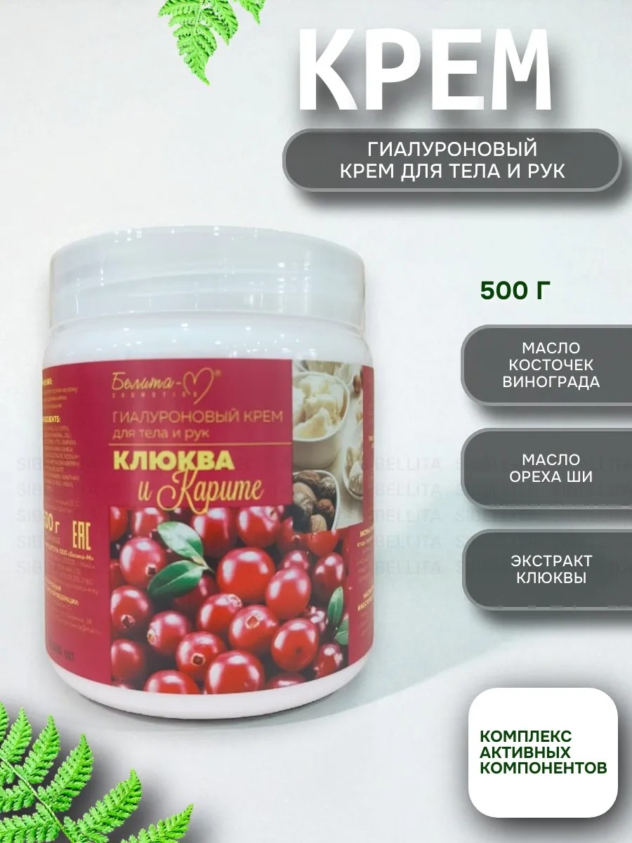 Гиалуроновый крем для тела и рук «Клюква и карите» «Белита-М», объёмом 500 грамм.