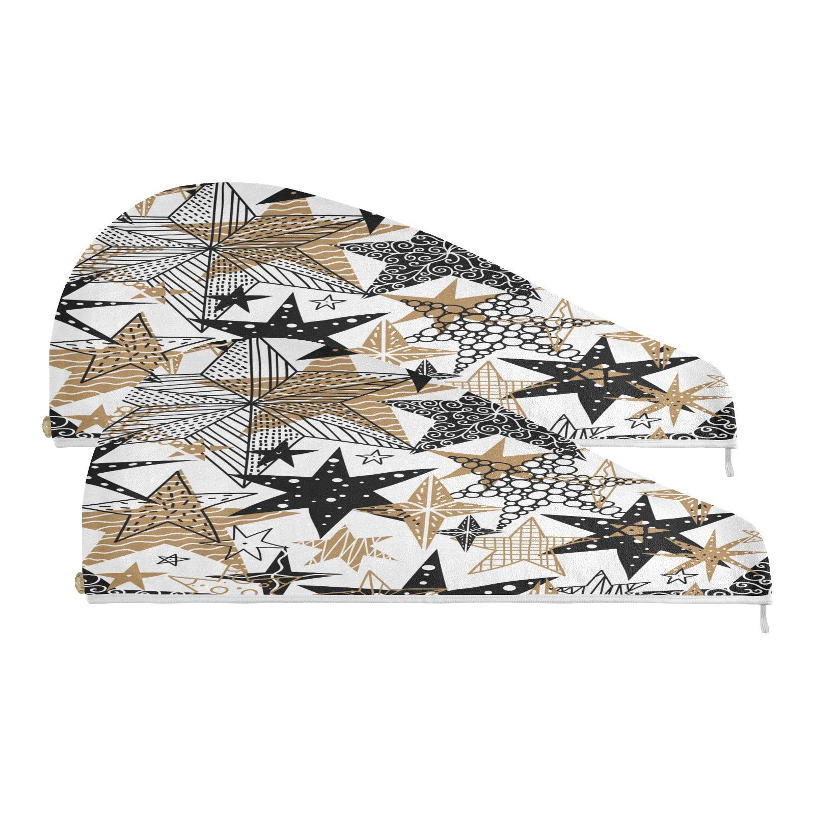 Black and Gold Doodle Stars Dry Hair Cap 2 Piece Quick Drying Towel Set with Button Headband Super Absorbent Soft & Comfortable