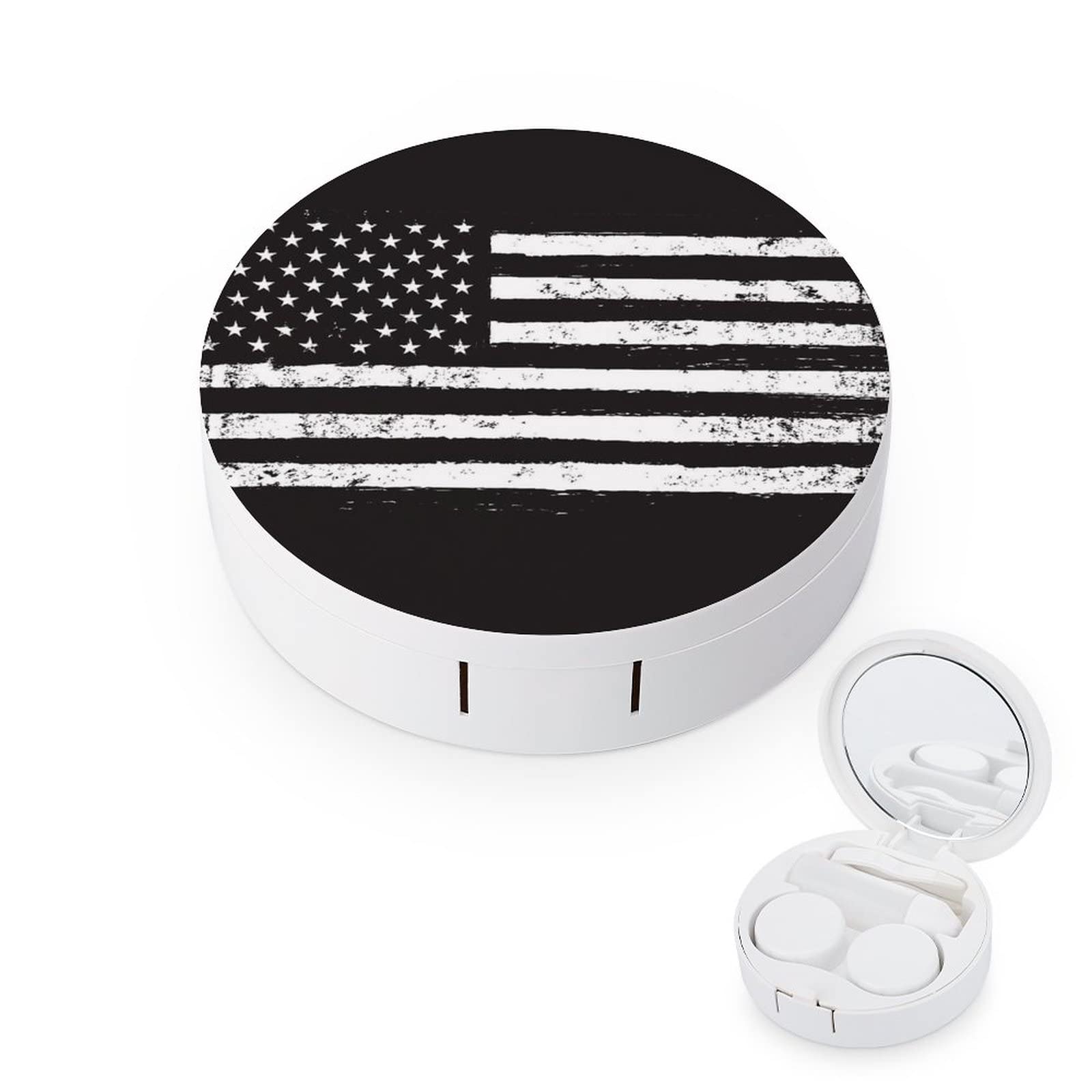 Black And White USA Flag Round Case For Contact Lens Kit Storage Box with Mirror Printed
