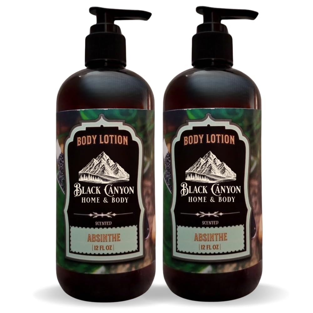12 Oz Bottle (2 Pack). Available in over 100 Fragrance Options. Provides up to 24 hours of hydration per application. Black Canyon Body Lotion is extra thick and creamy, with lanolin and jojoba oil to hydrate and condition your skin during and after application. SCENT: Absinthe (Anise, sugar, juniper, spices and citrus).
