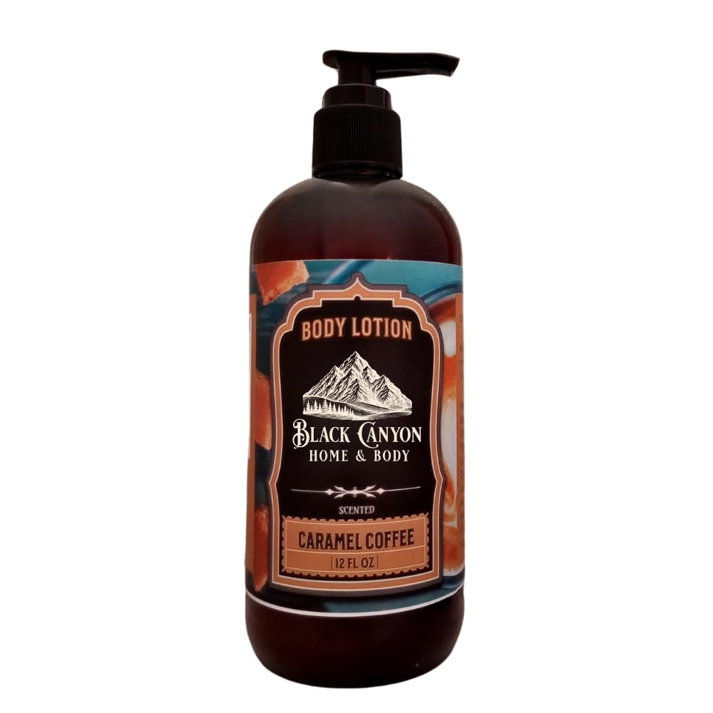12 Oz Bottle. Available in over 100 Fragrance Options. Provides up to 24 hours of hydration per application. Black Canyon Body Lotion is extra thick and creamy, with lanolin and jojoba oil to hydrate and condition your skin during and after application. SCENT: Caramel Coffee (Fresh brewed coffee with creamy caramel and hints of vanilla).