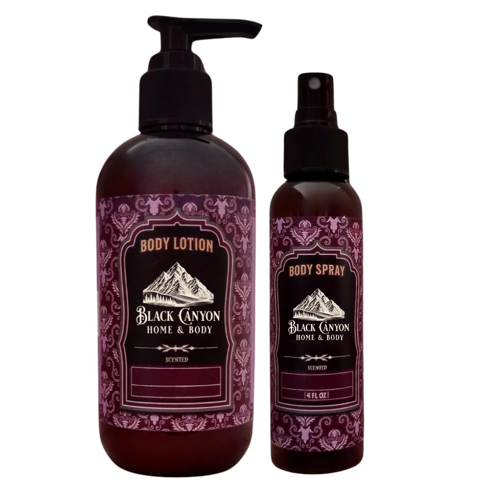 12 Oz Body Lotion - 4 Oz Body Spray. Black Canyon Scented Body Lotion and Body Spray Set. Body Lotion with Jojoba Oil and Lanolin. Black Canyon Scented Body Lotion and Body Spray Set. Scent: Magnolia Citrus Sandalwood (Magnolia, violet and carnation with teases of citrus and sandalwood).