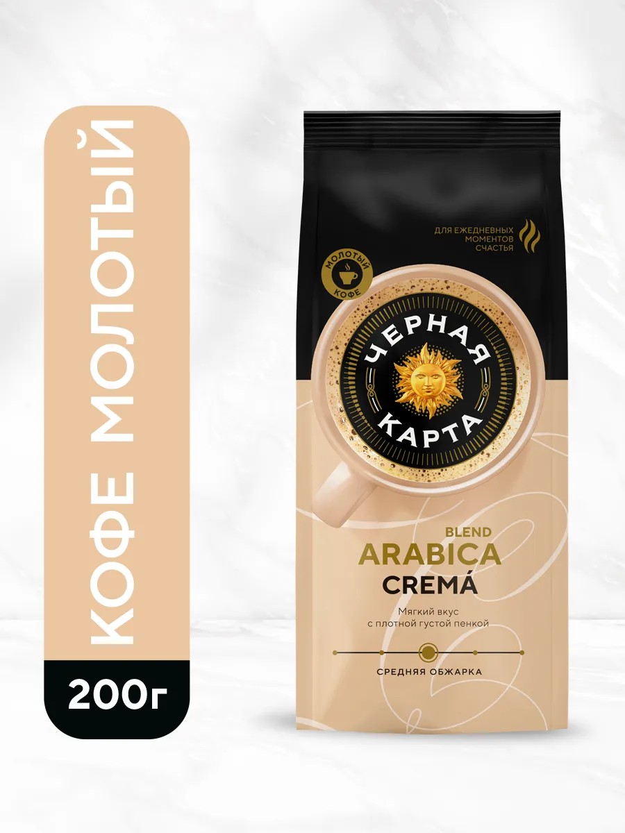 Черная Карта Кофе молотый Crema, 200 г