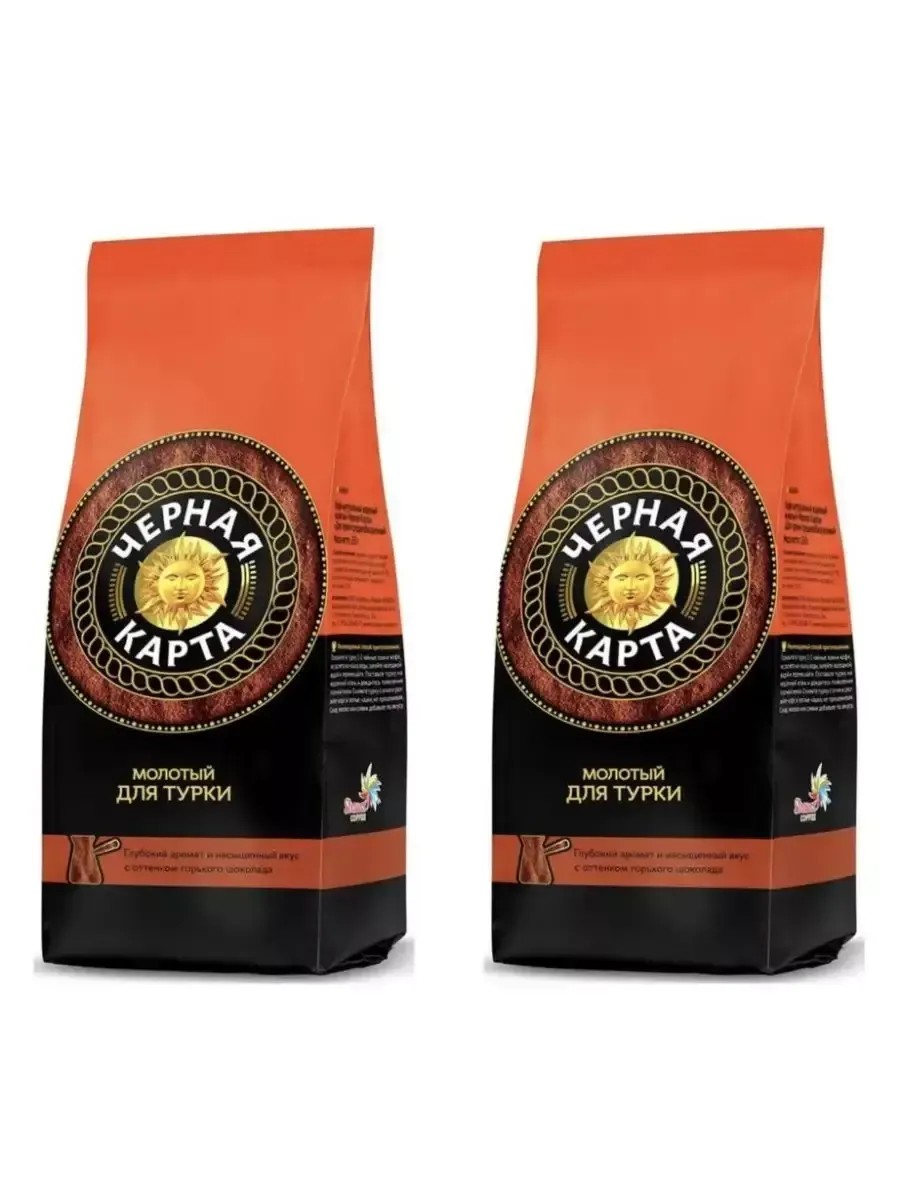 В комплекте 2 упаковки по 250 гр. Черная Карта, Кофе молотый для турки. Ультрамелкий помол делает этот кофе идеальным для приготовления в турке, а среднеобжаренные зерна Бразильской арабики в сочетании с робустой из Азии придают напитку глубокий аромат и насыщенный вкус с оттенком горького шоколада. Когда хочется создать особенное настроение для себя и своих близких, приготовьте кофе Черная Карта Для турки. Неспешный ритуал приготовления раскрывает весь вкус и аромат натурального кофе для вашего наслаждения.