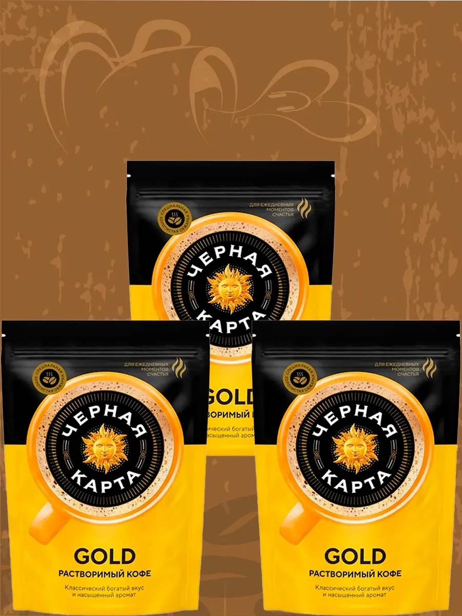 Черная Карта Кофе растворимый Черная Карта Gold, 3 пакета по 285 г