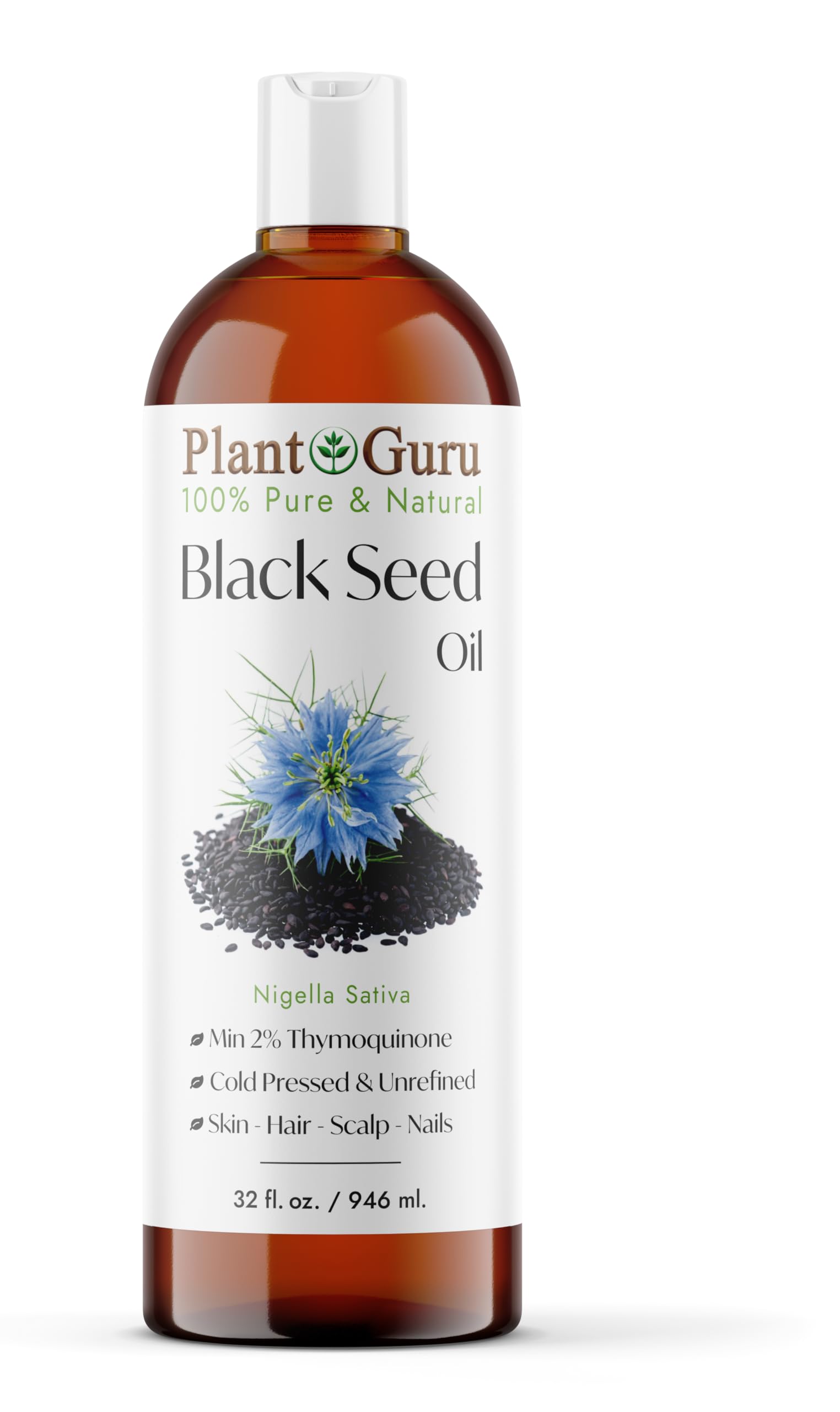 Black Cumin Seed Oil 32 fl. oz. Unrefined Cold Pressed 100% Pure Natural Nigella Sativa Kalonji Oil for Skin Care Hair Growth Scalp and Massage.