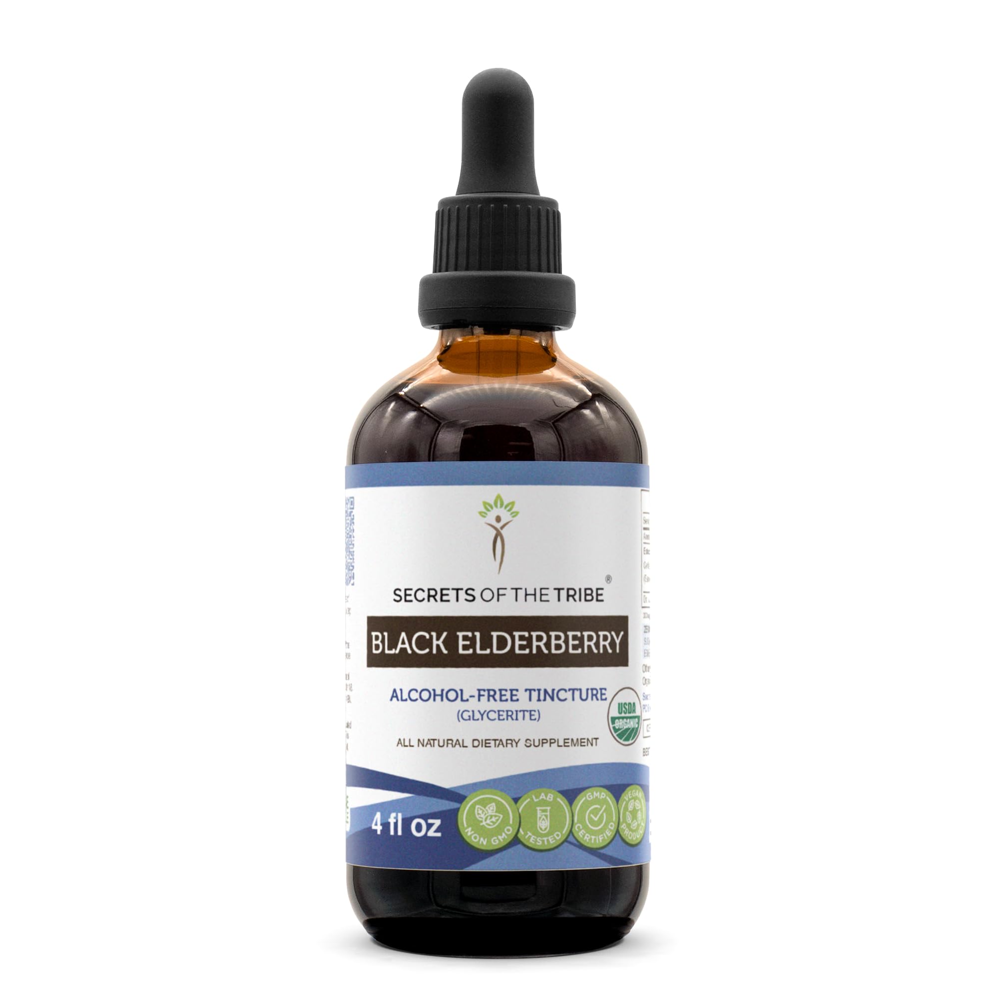 Black Elderberry USDA Organic Tincture | Alcohol-FREE Extract High-Potency Herbal Drops Immune System Health | Made from 100% Certified Organic Black Elderberry (Sambucus Nigra) 4 oz 4 Fl Oz (Pack of 1)