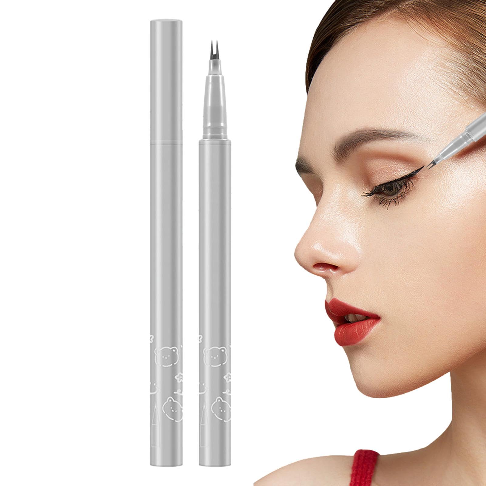 Black Eyeliner - Double Tip Eyelash Liner Eye Pencil - Waterproof Natural Lower Eyelashes Liner Black Make Up Pens for Girls Women Gray Brown
