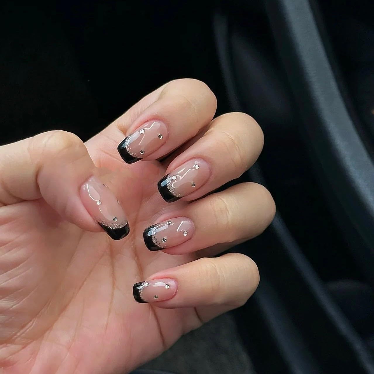 Introducing our Black French Handmade Phototherapy Nail Patch! These high-quality false nails are perfect for adding a touch of elegance to your look. Each nail patch is carefully handmade, ensuring attention to detail and a flawless finish. The stylish black French design is complemented by a beautiful starry sky and small diamond pattern. The short style of these nail patches gives a natural look that is perfect for any occasion. Upgrade your manicure game with our Black French Handmade Phototherapy Nail Patch!- Short style for a natural look. - Features a starry sky and small diamond pattern. - Stylish black French design. - Handmade with attention to detail. - High-quality phototherapy nail patch.