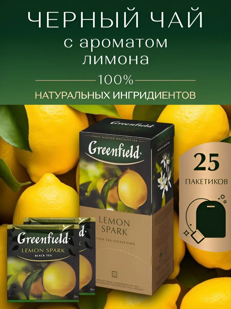 Greenfield Чай черный Гринфилд Lemon Spark в пакетиках / 25 шт